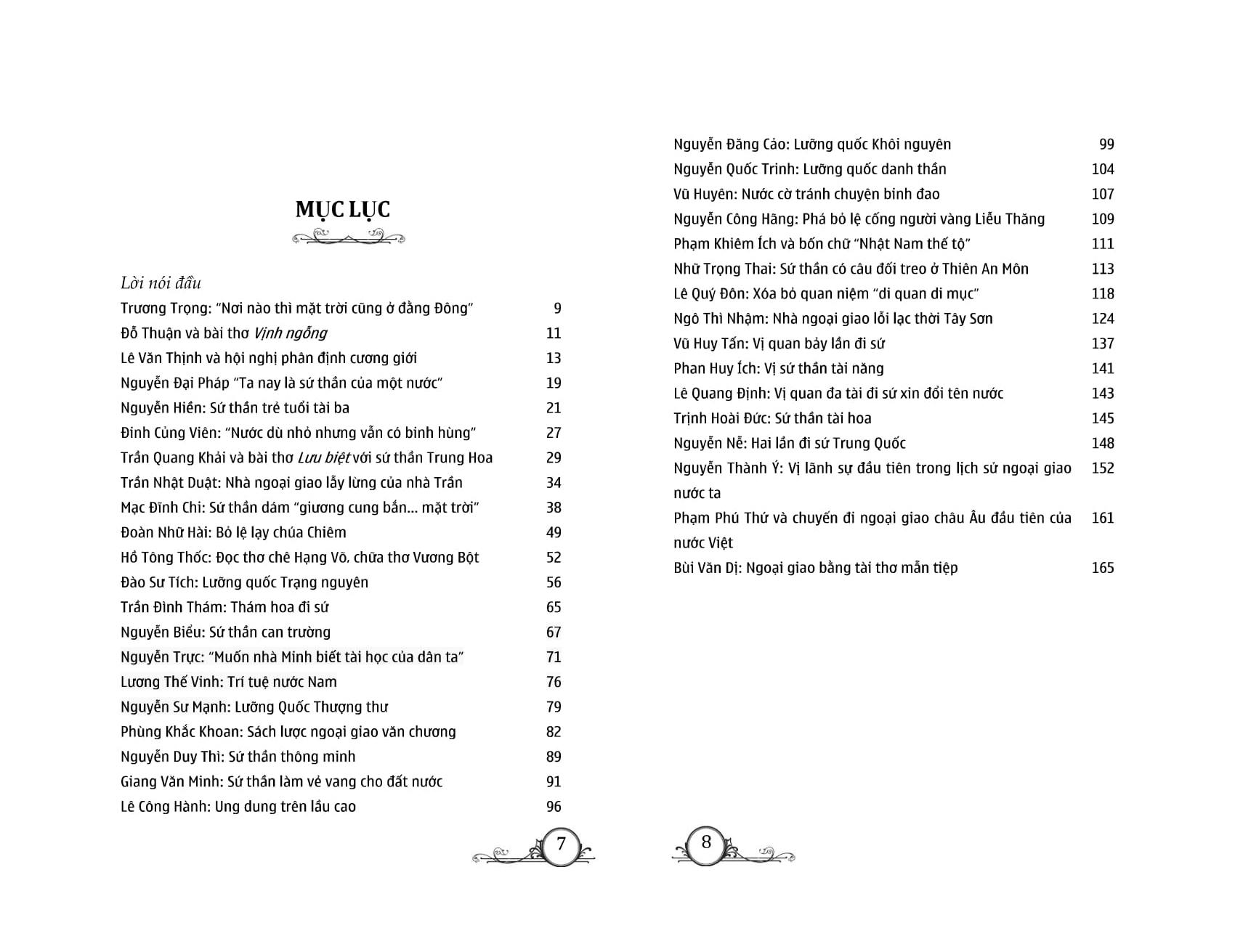 “Cố nhi, tri tân“ - Nhắc lại chuyện cũ để biết chuyện mới. Chúng tôi hy vọng rằng, qua cuốn sách “Kể chuyện các sứ thần Việt Nam“, bạn đọc sẽ có một cái nhìn xuyên suốt về lịch sử bang giao của dân tộc với những nguyên tắc bất di bất dịch: giữ vững c.hủ quyền lãnh thổ, danh dự quốc gia bằng nghệ thuật đàm phán thông minh, chính sách mềm dẻo và linh hoạt.