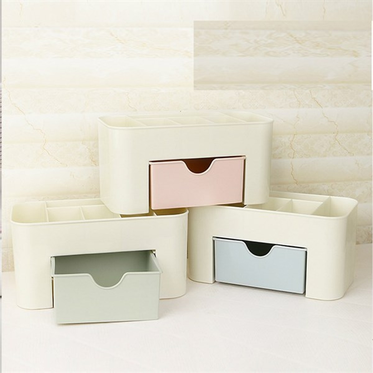 - Mỹ phẩm, đồ trang điểm và các phụ kiện làm đẹp như vòng tay, vòng cổ, khuyên tai, buộc tóc, … là những vật dụng cần thiết của phái đẹp nhưng cất giữ các vật ấy lẫn chung với đồ dùng khác sẽ khiến cho đồ đạc của bạn bị hư hỏng, mất đi form dáng ban đầu, ảnh hưởng đến công cuộc làm đẹp của chị em. Đôi khi cảm thấy bực mình khi tốn quá nhiều thời gian để đi tìm kiếm những món đồ cần dùng. Chúng tôi giới thiệu đến các bạn Kệ đựng mỹ phẩm ngăn kéo tiện dụng, xinh xắn giúp chị em sắp xếp các vật dụng cá nhân một cách gọn gàng, ngăn nắp tránh thất lạc và dễ dàng tìm kiếm khi cần.