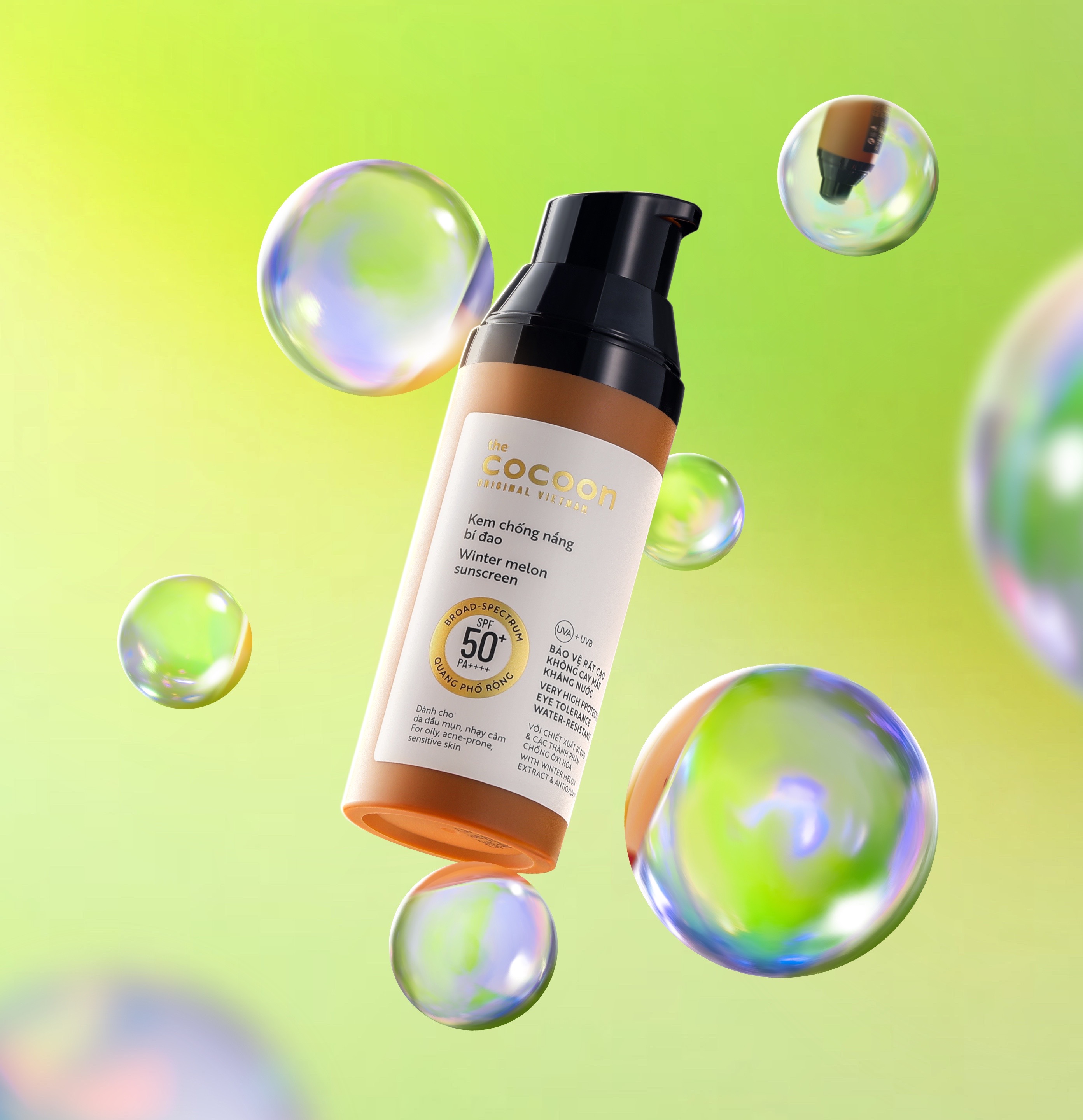 ✨Kem chống nắng bí đao quang phổ rộng, bảo vệ rất cao SPF 50 +, PA ++++ Cocoon 50ml thuần chay