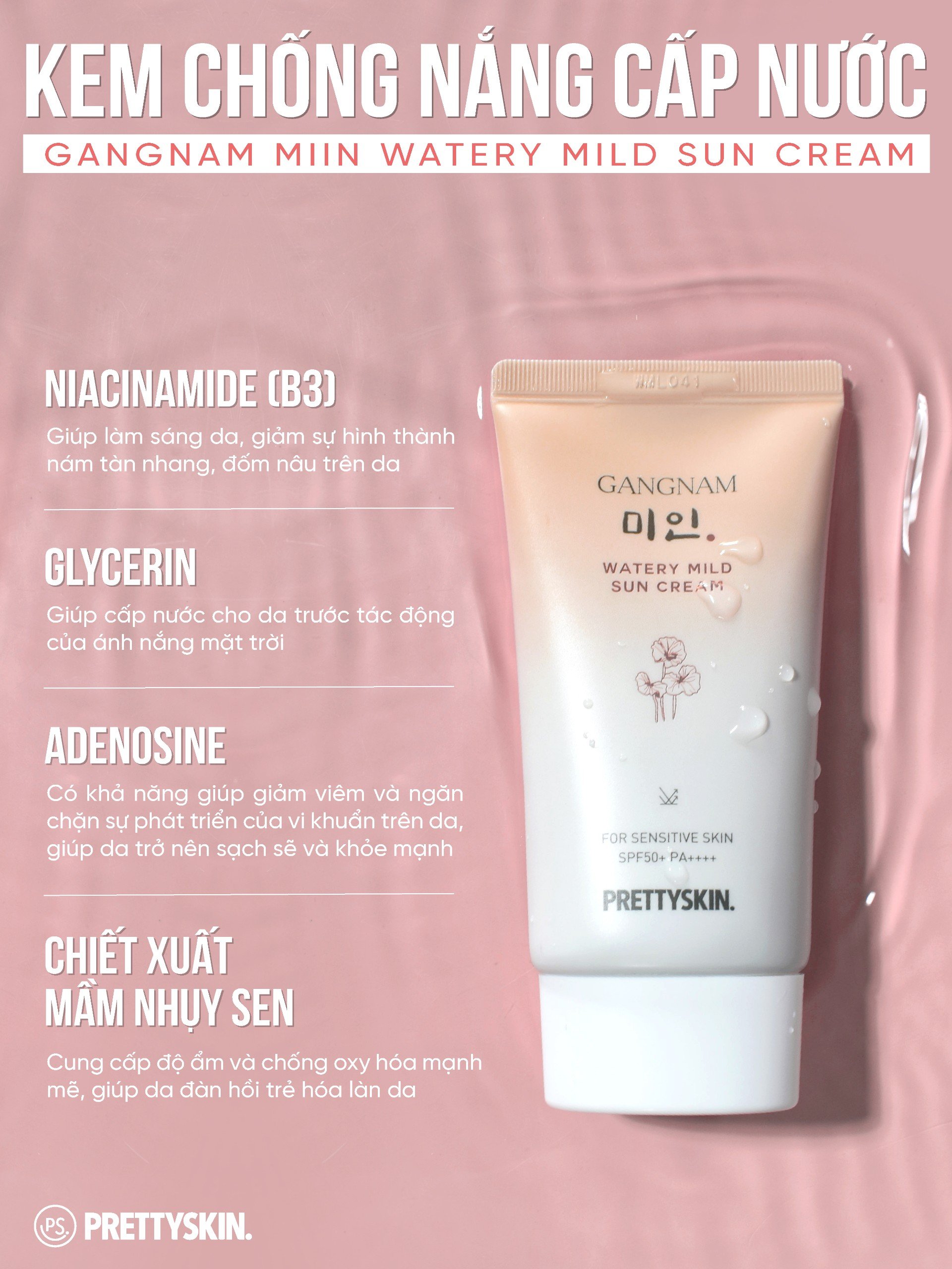 ✨Kem chống nắng cấp nước dành cho da khô Pretty Skin Gangnnam Min Watery Mild Sun Cream