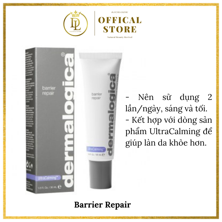 Kem dưỡng ẩm da Dermalogica Ultracalming Barrier Repair 30ml - Phục hồi da yếu, da nhạy cảm - Mỹ phẩm chính hãng từ DLYNK CLINIC - Tác dụng: Kem dưỡng ẩm cực dịu mượt giúp củng cố làn da bị nhạy cảm với lớp hàng rào bảo vệ bị tổn thương. Củng cố hàng rào lipid cho da. Tạo lá chắn chống lại các tác nhân gây hại từ môi trường & đồng thời tạo lớp nền mịn cho bước trang điểm. Sử dụng kem dưỡng ẩm dạng khan (không nước) độc đáo này sau bước cân bằng để giúp che chắn chống lại các tác nhân gây căng thẳng cho da. - Thành phần: Hợp chất siêu làm dịu UltraCalming độc quyền của Dermalogica chứa Yến mạch và các hoạt chất thảo mộc giúp giảm thiểu cảm giác khó chịu. Oenothera Biennis (Hoa dạ thảo) tăng cường lớp lipid tự nhiên. Fumaric Acid, Fumaria Officinalis (Cây lam cận) và Citrus Medica Limonum (Quả chanh) bảo vệ da khỏi các ảnh hưởng từ môi trường như ô nhiễm, nhiệt độ thay đổi, mỹ phẩm gây dị ứng, căng thẳng, ăn kiêng và các tác nhân hooc môn. Butyrospermum Parkii (Hạt mỡ), Ascorbyl Palmitate (Vitamin C) và Bisabolol: đánh bại các gốc tự do và mất độ ẩm. - Giải pháp: Phù hợp cho làn da nhạy cảm
