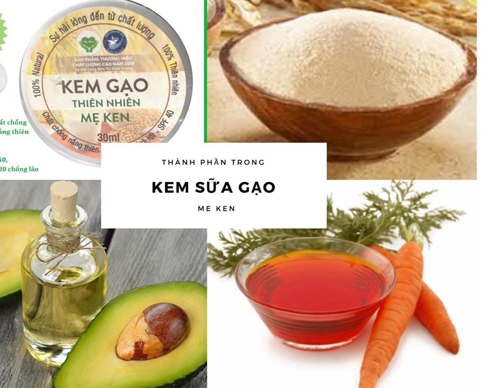 KEM GẠO THIÊN NHIÊN MẸ KE - 30ML HOÀN TOÀN THIÊN NHIÊN – AN TOÀN TUYỆT ĐỐI CHO DA BẦU VÀ SẢN PHỤ CHO CON BÚ Đã được kiểm định tại VIỆN PASTEUR HOÀN TOÀN KHÔNG GÂY KÍCH ỨNG DA THÀNH PHẦN : Tinh chất CÁM GẠO, SỮA, TINH DẦU ĐẬU NÀNH, BỘT NGỌC TRAI làm trắng da : trong cám gạo chứa vitamin B5 trắng da, chống lão hoá và bóng hồng. Bên cạnh đó, sữa và tinh dầu đậu nành là 2 tinh chất giúp da sáng bóng Sản phẩm sử dụng tinh chất chống nắng hoàn toàn bằng thiên nhiên như: Dầu bơ : SPF 15 Dầu cà rốt : SPF 40 Dầu lúa mì : SPF 20 chống lão hoá cực tốt CÔNG DỤNG: Dưỡng trắng da chống nắng với thành phần chống nắng hoàn toàn tự nhiên SPF 35 Bật 1 tông da ngay sau khi đánh Mịn mướt, nhẹ như không có gì trên mặt. KHÔNG GÂY BÍ DA Phù hợp mọi loại da Làm trắng hồng da CÁCH DÙNG : Đánh 1 lớp mỏng cho toàn bộ vùng mặt trước khi ra đường giúp da mịn màng, sáng hồng hẳn ra. Tẩy trang bằng dầu dừa hoặc tinh gấc trước khi ngủ. HẠN DÙNG: 1 năm kể từ ngày sản xuất Sự hài lòng đến từ chất lượng