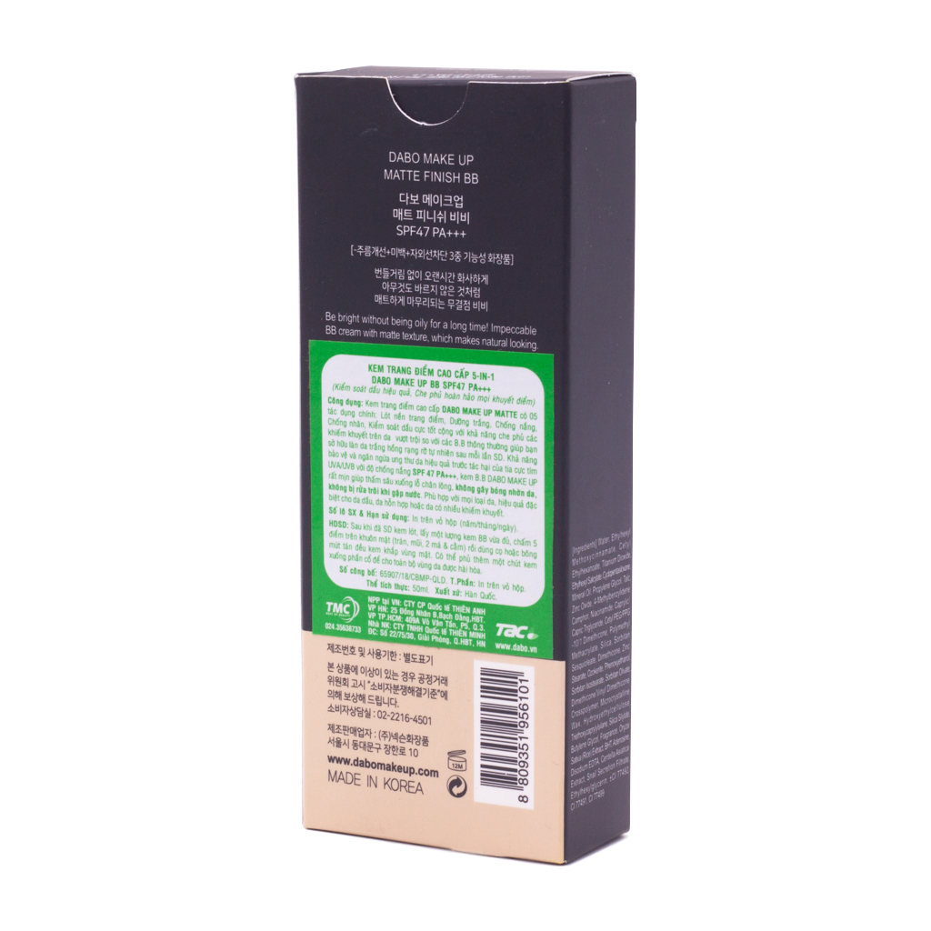Kem nền trang điểm cao cấp Hàn Quốc DABO MAKE UP MATTE 5 in 1 BB SPF47 PA+++ (50ml) – Hàng Chính Hãng