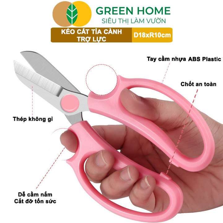✨Kéo Cắt Cành GreenHome, D18xr10cm, Dụng Cụ Làm Vườn, Tối Ưu Giảm Lực Tay, Màu Sắc Hiện Đại, Dễ Sử Dụng Cắt Tỉa Hoa