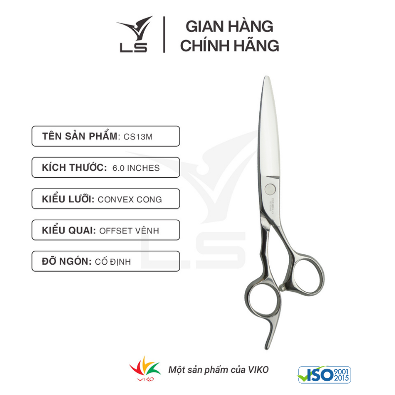 Kéo cắt tóc LS là một thương hiệu được sản xuất bởi Công ty TNHH Dụng cụ cắt Việt Hàn (Viko cutting tools Company limited) - đáp ứng đầy đủ các tiêu chuẩn quốc tế. Kéo LS thuộc dòng sản phẩm phổ thông, hướng tới đại đa số khách hàng trung bình tại các tỉnh thành trong cả nước. Với hệ thống bán hàng rộng khắp được xây dựng trong 14 năm phát triển, Kéo LS luôn nỗ lực phục vụ khách hàng một cách thuận tiện nhất. THÔNG TIN SẢN PHẨM KÉO CHUỐT TÓC LƯỠI CONG LS CS13M