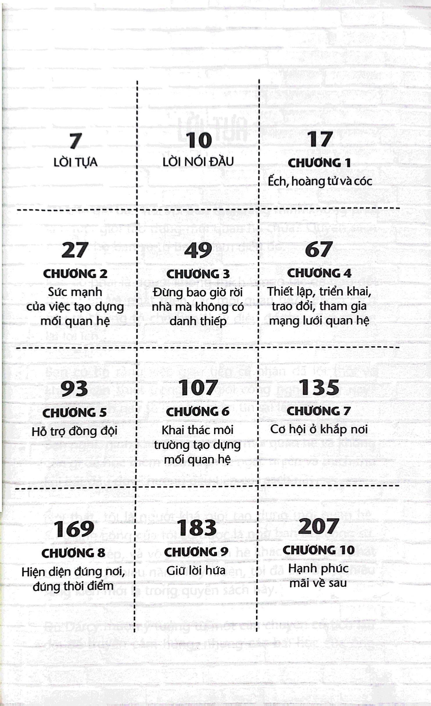 Bạn sẽ ngạc nhiên và thích thú khi bắt đầu đọc chương đầu tiên của sách này. Việc tạo dựng mối quan hệ tích cực có thể mang đến cho bạn nhiều giá trị hơn ngoài việc giúp bạn thành công. Nó có thể giúp bạn trở nên tốt hơn và quảng đại hơn, một người thật sự cống hiến cho xã hội và cho những người xung quanh.