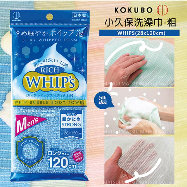 Khăn tắm tạo bọt Kokubo Whip's - Hàng nhập khẩu Nhật Bản: * Chất liệu: 90% Nylon & 10% Polyester, mềm mịn, bông xốp với khả năng tạo bọt mịn nhanh chóng không gây trầy