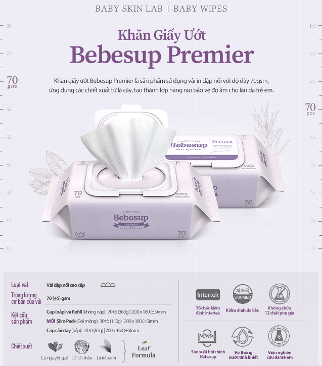 Khăn Ướt Bebesup Primier 70 Tờ/ Gói Nhập Khẩu Hàn Quốc Thương Hiệu Bebesup Thương hiệu: BEBESUP Xuất xứ: Hàn Quốc Số lượng: 1 gói (1 gói/ 70 tờ) Độ dày: 70gsm Đối