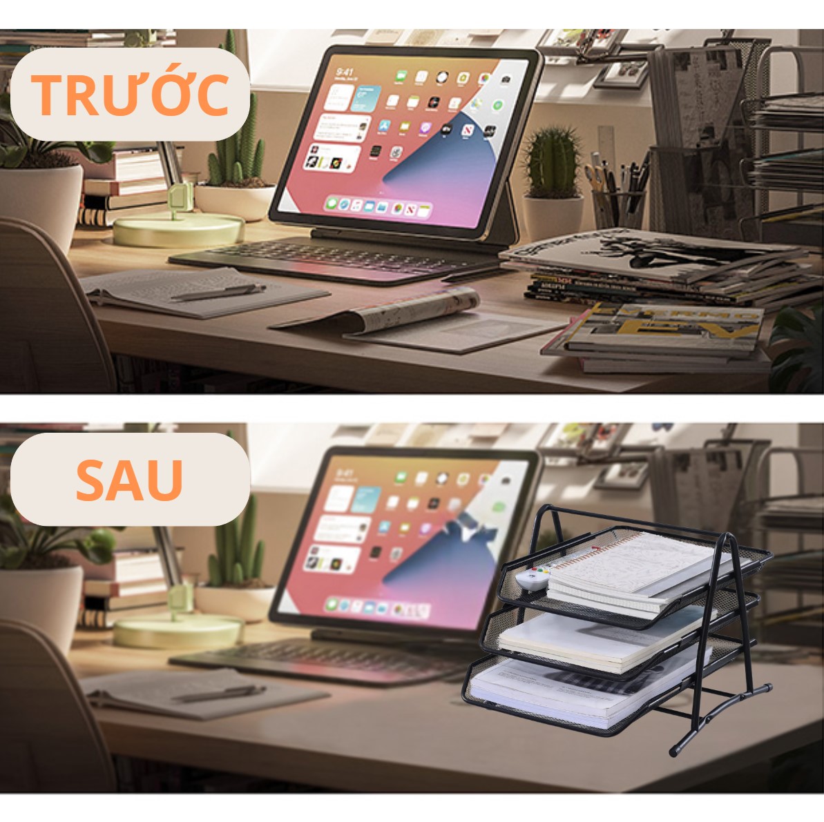 CÔNG DỤNG, ƯU ĐIỂM: - Thiết kế 3 khay giúp bạn thoải mái đựng hồ sơ, tài liệu, giấy tờ, sách vở - Khay đựng có thể kéo ra, đẩy vào giúp tiết kiệm thời