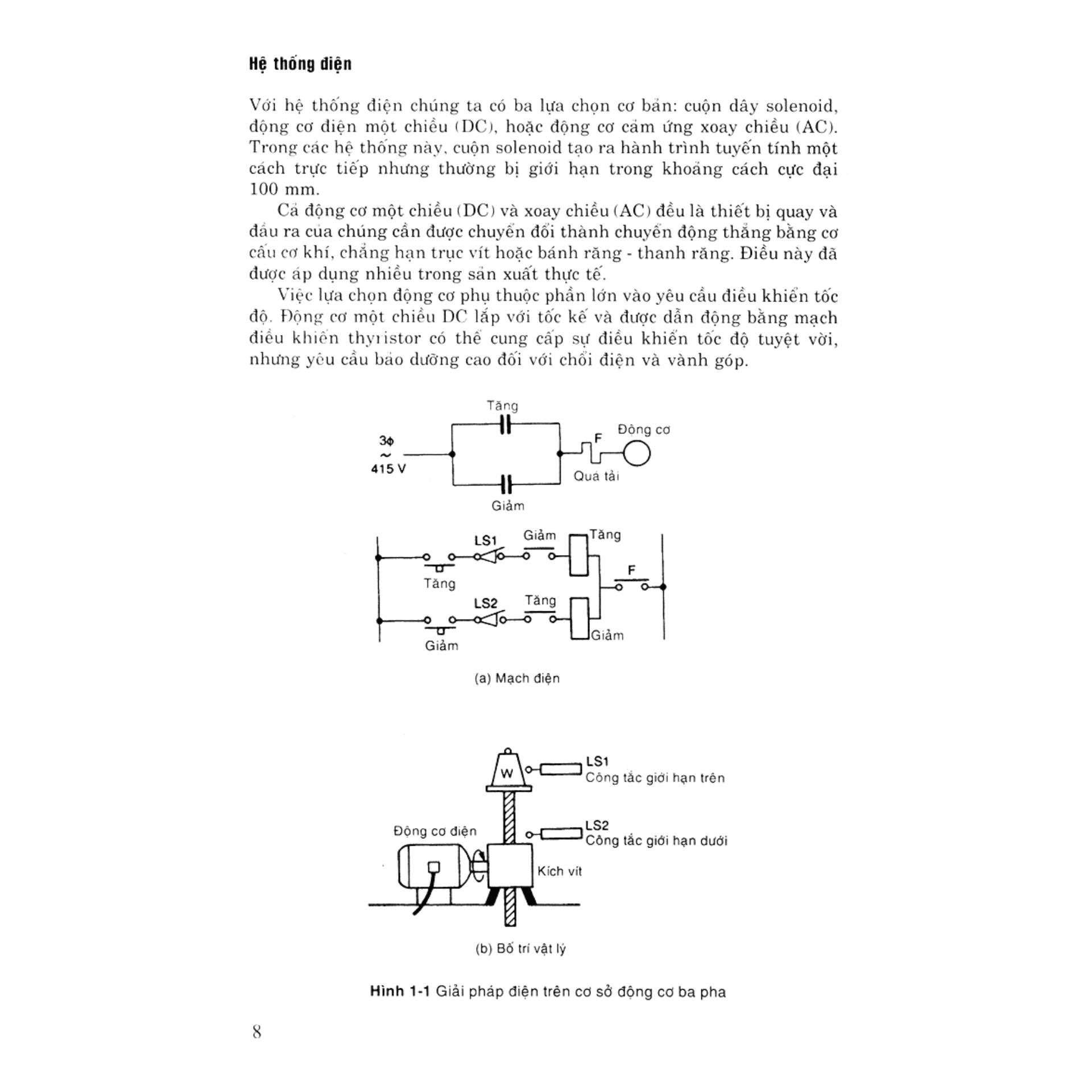 Chương 1. Nguyên lý cơ bản. Cơ cấu truyền năng lượng công nghiệp. So sánh các hệ thống truyền lực. Thuật ngữ kỹ thuật. Định luật pascal. Đo áp suất. Lưu lượng lưu chất. Nhiệt độ. định luật chất khí. Chương 2. Bơm thuỷ lực và điều chỉnh áp suất. Điều chỉnh áp suất. Các loại bơm . Valve tải. Bộ lọc Chương 3. Máy nén khí, xử lý không khí và điều chỉnh áp suất. Các loại máy nén. Bình chữa khí và điều khiển máy nén. Xử lý không khí. Điều chỉnh áp suất. Bộ phụ tùng. Chương 4. Valve điều khiển. Ký hiệu trên sơ đồ. Các loại valve điều khiển. Valve vận hành dẫn hướng. Valve điều khiển. Valve tịnh tiến đảo chiều và valve xả nhanh. Valve chuổi thứ tự. Valve tác động trễ. Valve cân bằng. Valve trợ động. Valve điều khiển module và bộ góp. Valve logic kiểu hộp. Chương 5. Bộ tác động. Bộ tác động tuyến tính. Vòng đệm kín. Bộ tác động quay.Ứng dụng. Bộ tác động kiểu hộp xếp. Chương 6. Các bộ phận trong hệ thuỷ lực và khí nén. Bình chứa thuỷ lực. Bộ tích luỹ thuỷ lực. Bộ trao đổi nhiệt và làm nguội thuỷ lực. Lưu chất thuỷ lực. Đường ống khí nén, ống mềm và khớp nối. Chương 7. Qúa trình điều khiển khí nén. Tín hiệu và tiêu chuẩn. Đầu phun kiểu cánh trập. Bộ tăng lưu lượng. Nguyên lý cân bằng lực và relay khí. Bộ điều khiển khí nén. Valve điều khiển quá trình và bộ tác động. Bộ chuyển đổi. Các ứng dụng chuổi thứ tự. Chương 8. An toàn, chẩn đoán sự cố và bảo dưỡng. Vệ sinh công nghiệp. Khí cụ chẩn đoán sự cố. Tìm sự cố. Bảo dưỡng phòng ngừa.