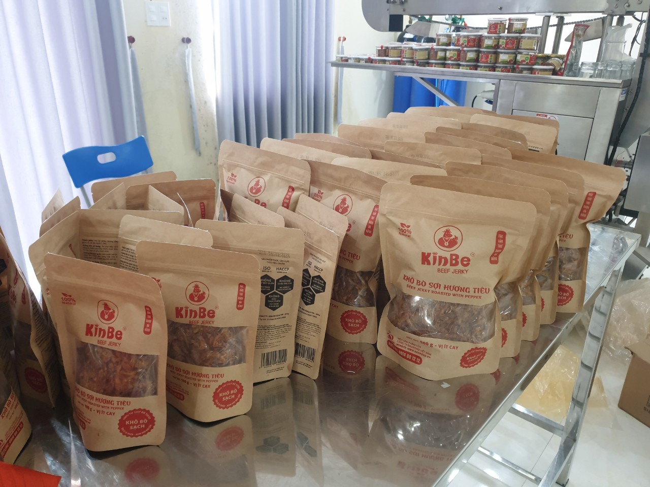 - KHÔ BÒ SỢI NHÃN HIỆU KINBE BEEF JERKY, vị ít cay với CÔNG THỨC CHẾ BIẾN GIA TRUYỀN 3 KHÔNG (không màu thực phẩm, không chất phụ gia, không chất bảo quản) có hương vị thơm ngon hảo hạng, ít chất béo, giàu Protein, tốt cho sức khỏe.