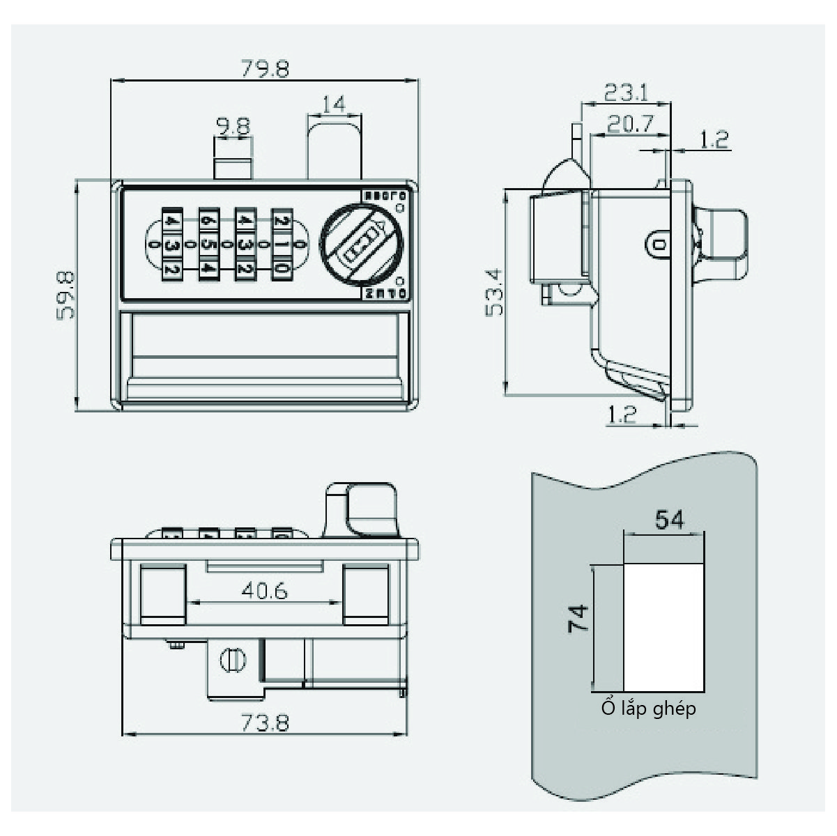 - Thông số kỹ thuật: Thân khóa : Nhựa ABS cao cấp Lõi khóa : Đồng thau hoặc hợp kim kẽm Màu: Kem, Xám Tay nắm cửa Mặt số : Khắc chìm Kích thước: (Cao x Dài x Sâu) 80 x 60 x 40 mm