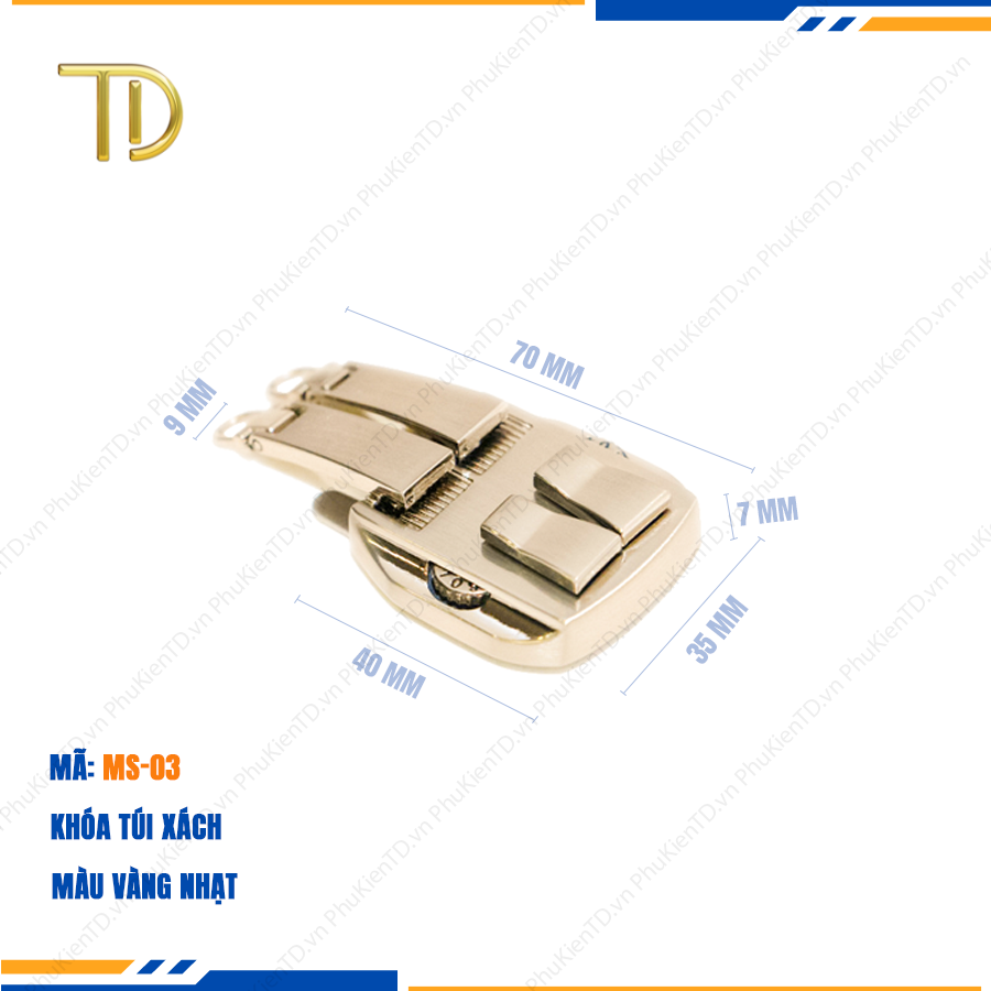 - Hàng luôn có sẵn, giao hàng siêu tốc, freeship toàn quốc THÔNG TIN SẢN PHẨM – Tên sản phẩm : Khóa túi xách, Khóa số túi xách, Khóa số dây kéo đôi túi xách công nghệ mạ điện độ bền 5-8 năm – Thương hiệu: Phụ kiện TD – Chất liệu: Hợp kim cao cấp – Công nghệ: Mạ điện Electroplating, chống ăn mòn, chống rỉ sét, không bay màu. – Kích thước