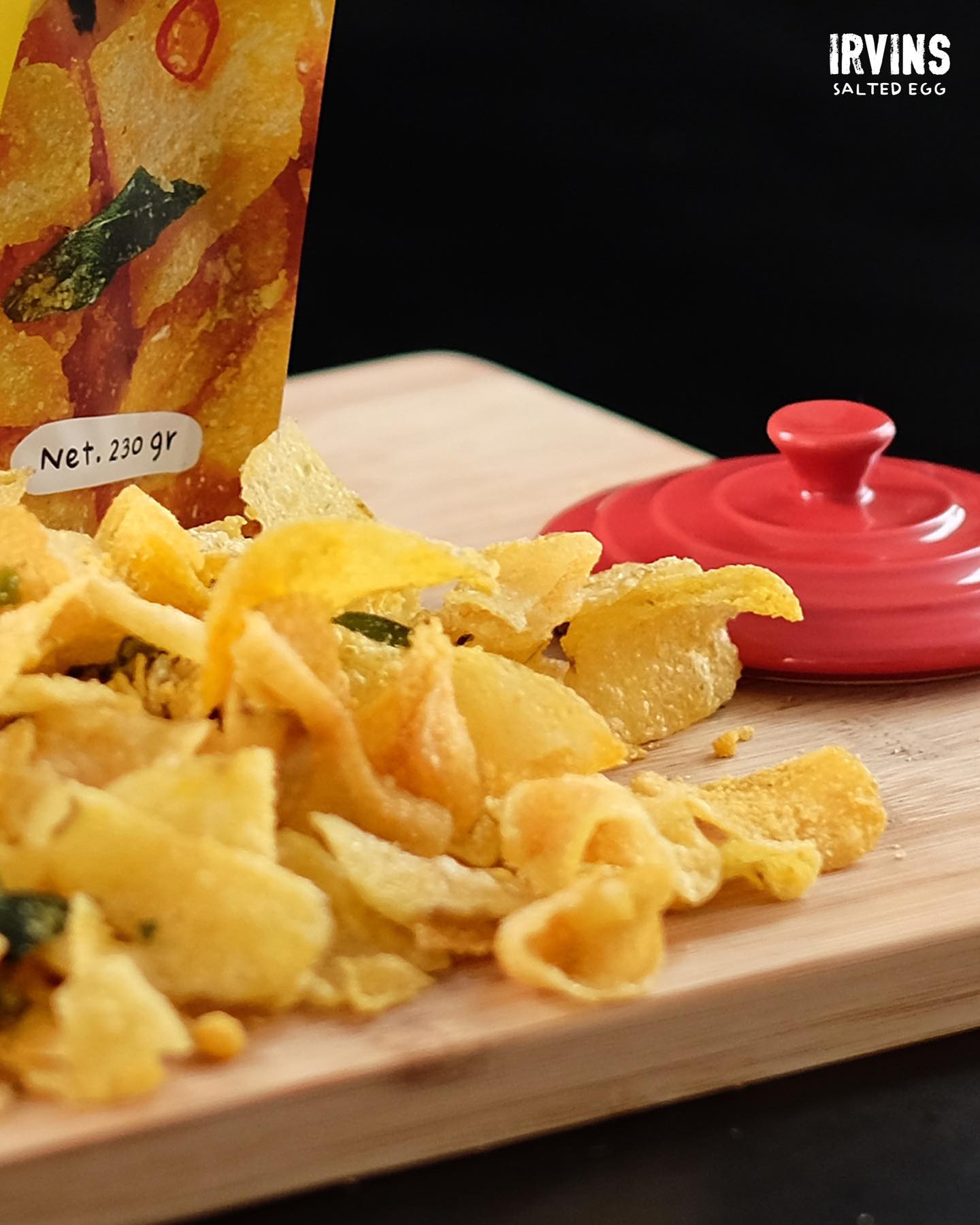 Khoai tây cắt lát mỏng được chiên vàng giòn, trộn với lòng đỏ trứng muối thật thơm, lá cà ri thơm và ớt sừng đỏ rực, cảm giác giòn rụm, cay the và vị trứng muối béo ngậy khó cưỡng Công thức cao cấp của Irvins tạo ra một trải nghiệm ăn vặt đa giác quan sẽ khiến bạn muốn ăn nữa ăn mãi Món ăn vặt trứng muối Irvins nổi tiếng của Singapore hiện đã có mặt tại VNShop và được phân phối độc quyền bởi IPP Travel Retail! Chuyên về đồ ăn vặt và sốt trứng muối #ĂnlàNghiện, các nhà sáng tạo thực phẩm của IRVINS được làm thủ công không thêm chất bảo quản, chỉ sử dụng những nguyên liệu tốt nhất. Sản xuất tại Singapore.