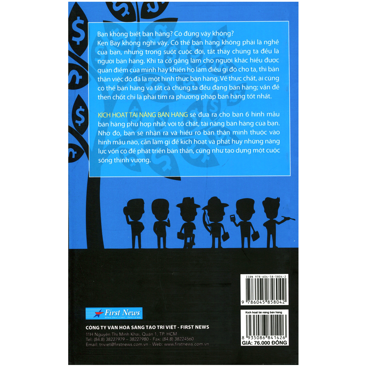 Kích Hoạt Tài Năng Bán Hàng là một chương trình đào tạo, hay là một bản nghiên cứu thiết thực được một người bán hàng thành công trình bày gói gọn một chương trình và các công cụ đào tạo tuyệt vời. Với bề dày kinh nghiệm bán hàng cùng với tư tưởng rõ ràng và đơn giản, Ken Bay thực sự là một nhà khoa học về "Bán hàng". Anh đã chứng minh rằng tất cả mọi người đều có thể bán hàng một cách phi hệ thống. Dựa theo 6 hình mẫu bán hàng đại diện cho 6 kiểu người khác nhau, Ken Bay đã đưa ra cho chúng ta những hình ảnh sinh động về nhiều hình mẫu bán hàng khác nhau.