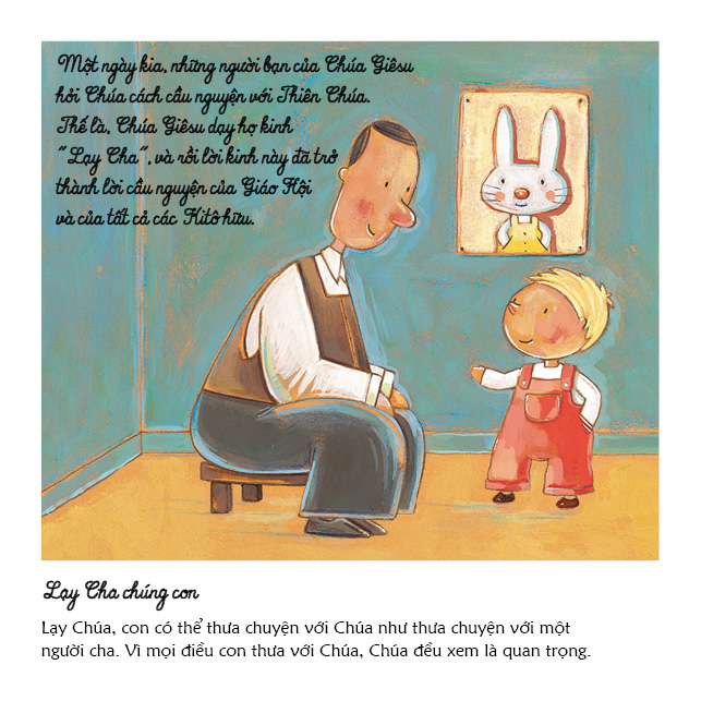 Tập truyện bé nhỏ đầy màu sắc này minh hoạ hai kinh quen thuộc của người Kitô hữu giúp bé nói với Đức Maria như nói với mẹ, chị hay bạn mình và nói với Thiên Chúa như nói với cha mình.
