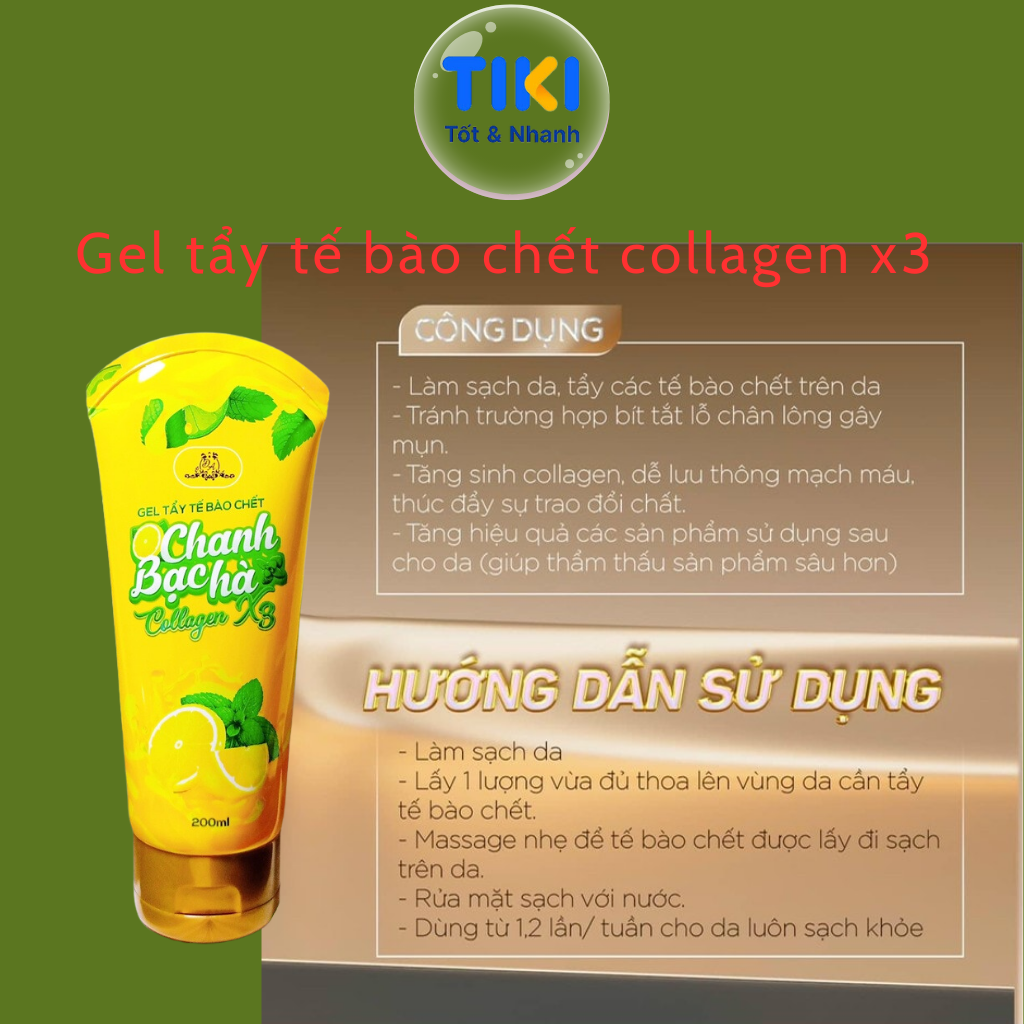 Kỳ Tế Bào Chết Collagen X3 Tẩy Tế Bào Chết Chanh Bạc Hà Làm Sạch An Toàn The Mát Dịu Nhẹ Đông Anh Chính Hãng 200ml THÔNG TIN SẢN PHẨM - Tên sản phẩm :