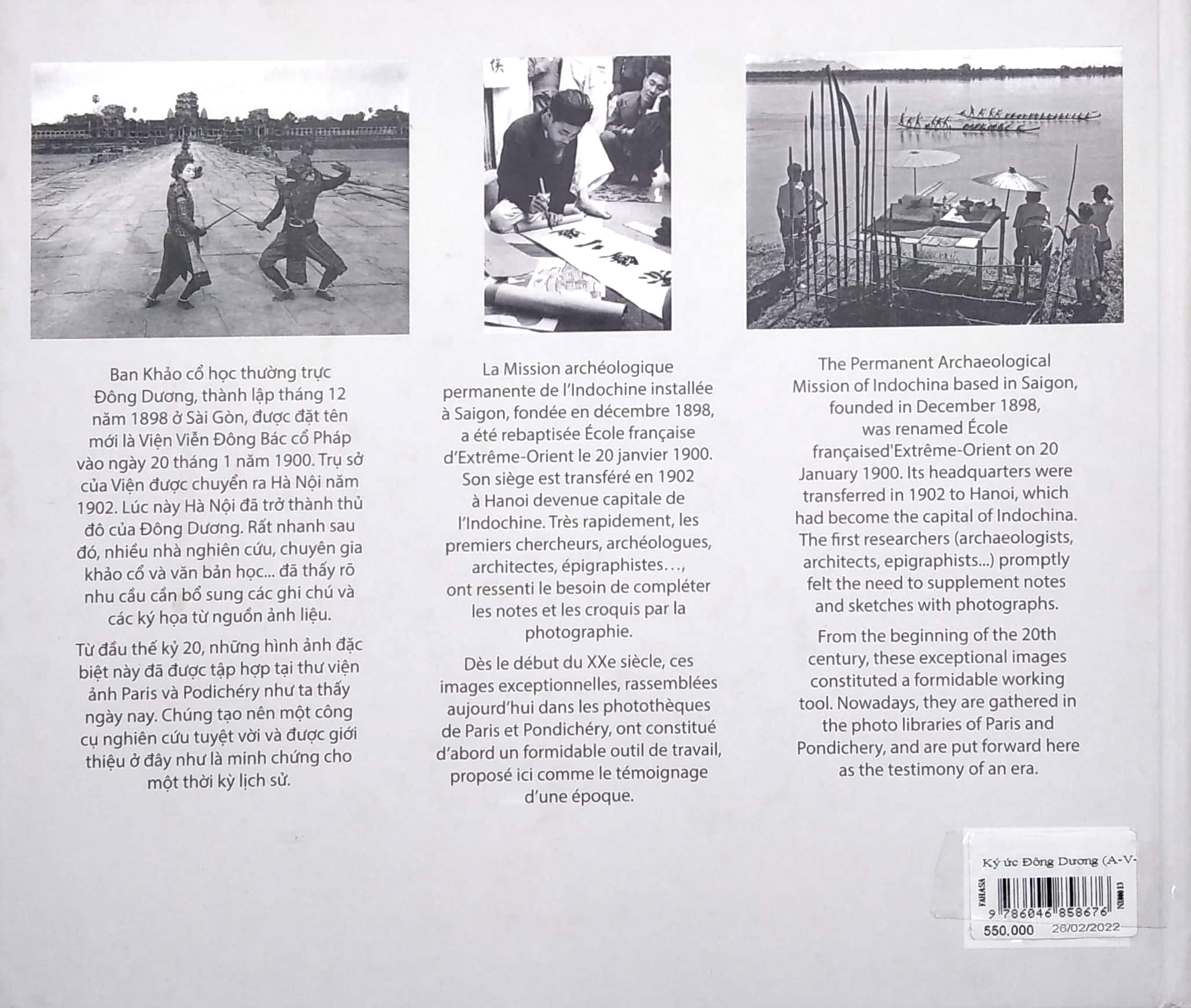 Phần đầu của tập sách giới thiệu về lịch sử hình thành và những tư liệu quý giá qua thời gian được lưu trữ kỹ lưỡng bởi Viện Viễn đông Bác cổ (EFEO) Pháp qua những chuyển biến của lịch sử. Những hình ảnh khắc sâu trong tim, về khoảnh khắc trong quá khứ, xuyên suốt ở ba quốc gia Việt Nam - Campuchia – Lào được tái hiện vô cùng sinh động, hiện thực qua từng trang sách, đó là Ký ức Việt Nam: cận cảnh Đông Dương, con người và truyền thống; mỹ thuật và kiến trúc, Phật giáo, lễ hội và nghi thức tôn giáo; Ký ức Campuchia: khoa học - mỹ thuật - chính trị, đất - nước, nghi lễ hoàng cung, nhà sư và chùa chiền, thế giới “tách biệt”, khám phá; và Ký ức Lào: tự nhiên và văn hóa, con người và thiên nhiên, lễ hội và truyền thống, thực hành phật giáo. Tổng hợp tương quan về đa sắc tộc….