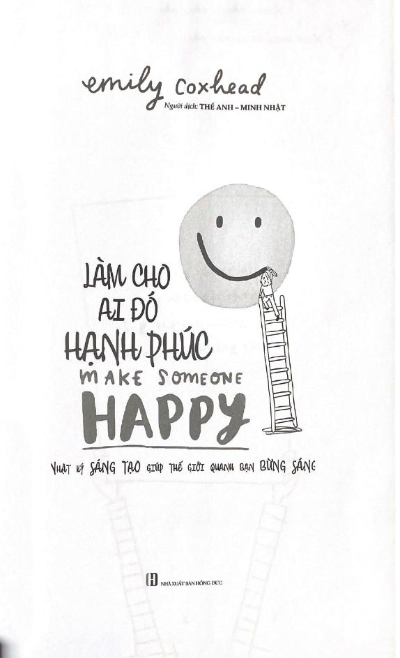 Làm Cho Ai Đó Hạnh Phúc - Make Someone Happy Cuốn sách này sẽ khiến bạn hạnh phúc. Trong một thế giới ảm đạm, người ta dễ bị mắc kẹt trong vòng xoáy tiêu cực. Hãy để cuốn sách tươi sáng, vui vẻ và đầy sáng tạo này xua tan mây mù trong cuộc sống của bạn: Tìm một tin tức tích cực trong tuần và dán vào trang sổ nhật ký của m.ình. Viết ra những điều khiến bạn mỉm cười hôm nay. Gửi đến bạn bè một “giỏ yêu thương” chứa đầy những lời nhắn vui tươi và món ăn vặt yêu thích của họ. Gây bất ngờ cho người lạ khi trả tiền cà phê cho họ. LÀM CHO AI ĐÓ HẠNH PHÚC nhắc bạn nhớ rằng những điều nhỏ nhặt tuyệt vời đang diễn ra mỗi ngày trong cuộc sống, và bạn cũng có khả năng lan truyền niềm vui đến những người xung quanh.