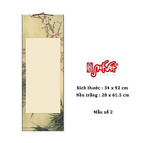 Liễn giấy bồi trục treo in viền hoa chuyên dùng để viết thư pháp. Giấy dày, in tranh hoa điểu sắc nét, thẩm mỹ. Kích thước 34 x 92 cm, ruột trắng 28x61.5 cm Sản