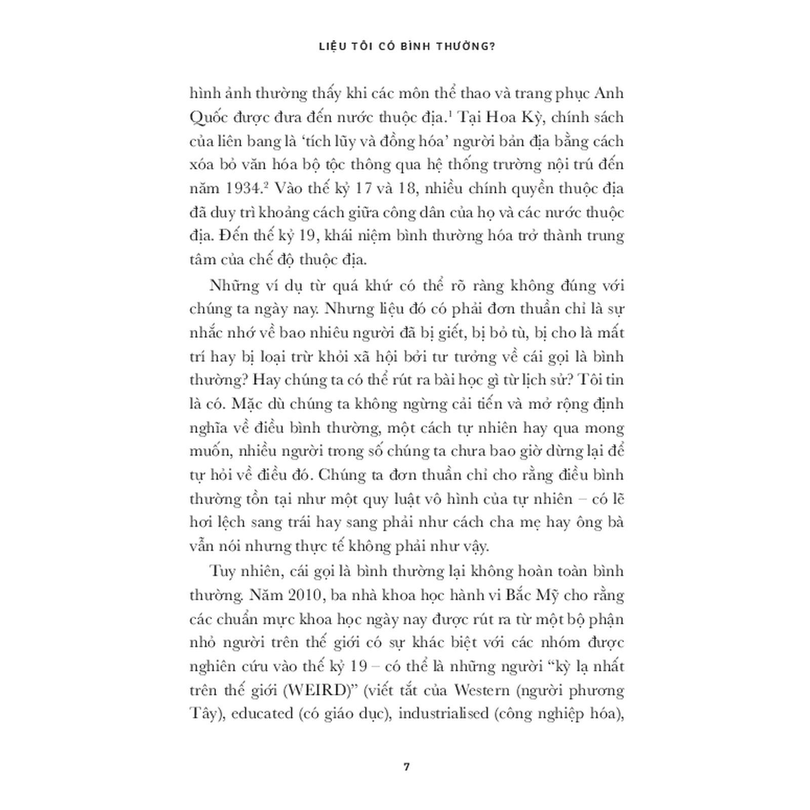 Thú vị và hoàn toàn thuyết phục, dẫn dắt vấn đề qua nhiều nguồn dẫn chứng, các công trình khoa học, các tác phẩm văn học, xã hội học... cuốn sách này sẽ giúp bạn đọc phần nào giải quyết được mối băn khoăn muôn thuở “Liệu chúng ta có bình thường?".