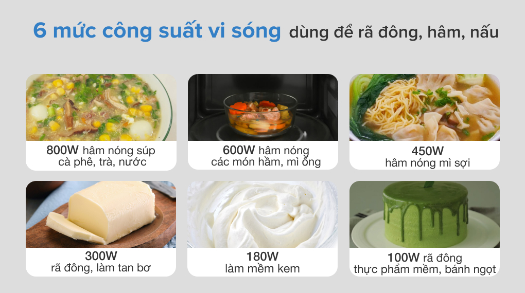 Chức năng chính: Rã đông, hâm, nấu