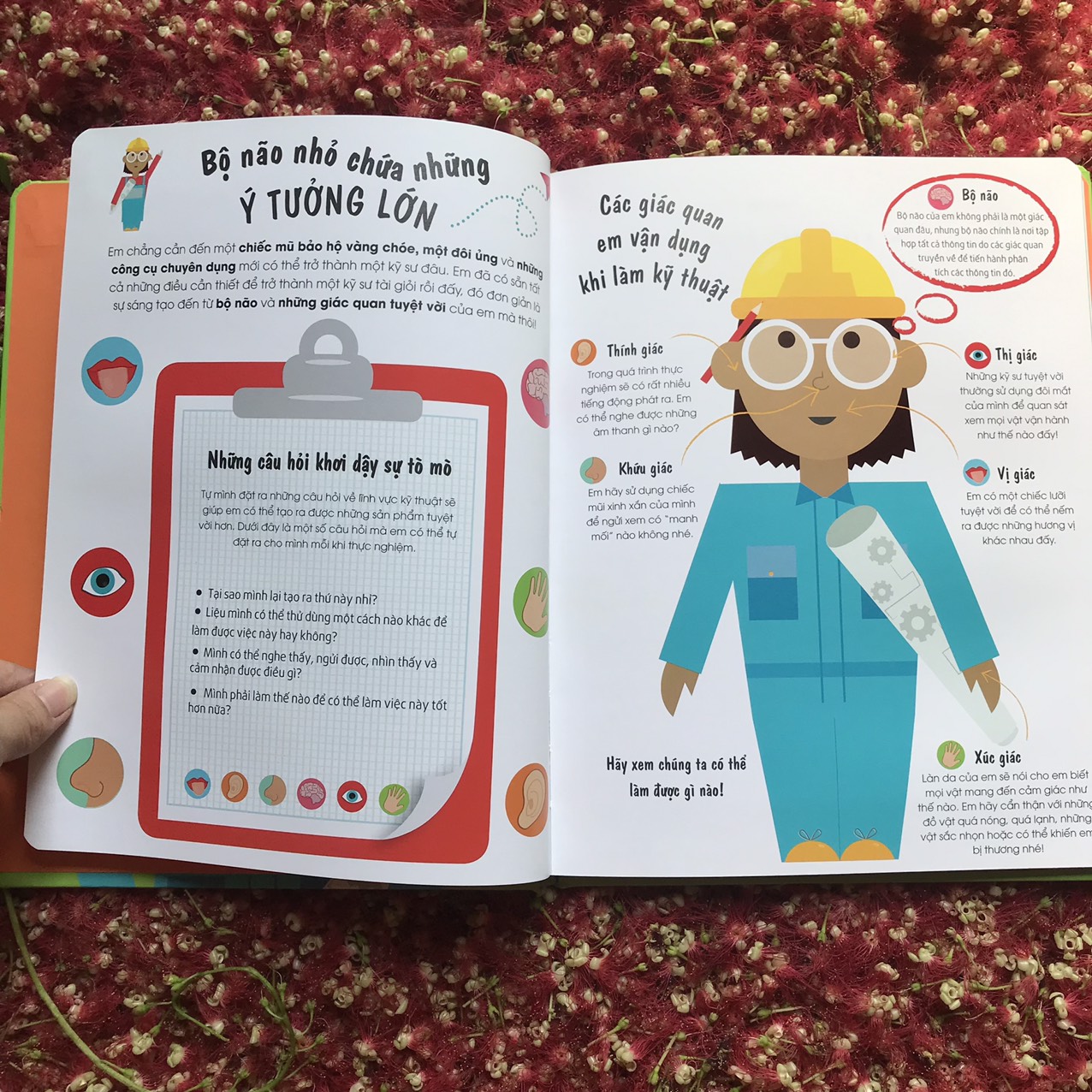 Bạn vốn dĩ đã có đủ mọi tố chết để có thể trở thành một kỹ sư tuyệt vời: BỘ NÃO thông minh cùng những GIÁC QUAN siêu nhạy. Hãy sẵn sàng để CHẠM, NGỬI, NHÌN, NGHE và cả NẾM THỬ những kỹ thuật xuất sắc theo cách riêng của bạn nhé. Cuốn sách này sẽ giúp bạn tìm ra: TẠI SAO máy bay giấy lại lướt bay được trong không trung? ĐIỀU GÌ đã giúp những cây cầu trở lên cực kỳ vững chắc? LÀM CÁCH NÀO để nướng kẹo dẻo bằng ánh sáng mặt trời? Và còn rất nhiều điều thú vị đang chờ bạn khám phá đấy!