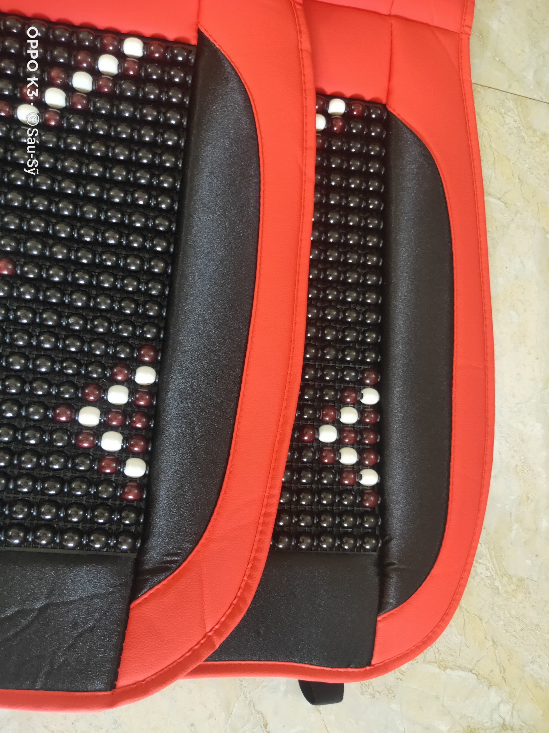 Lót Ghế Ô Tô hạt Gỗ Đệm Nỉ Cao Cấp họa tiết hoa văn màu Đen đỏ