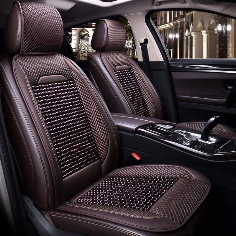 Bọc Ghế Ô Tô - Áo Ghế Oto - Lót Liền Hạt Gỗ Trơn Nhẵn --> Bộ 1 áo ghế ô tô chất liệu da cao cấp phủ 1 ghế trước, có đan hạt gỗ