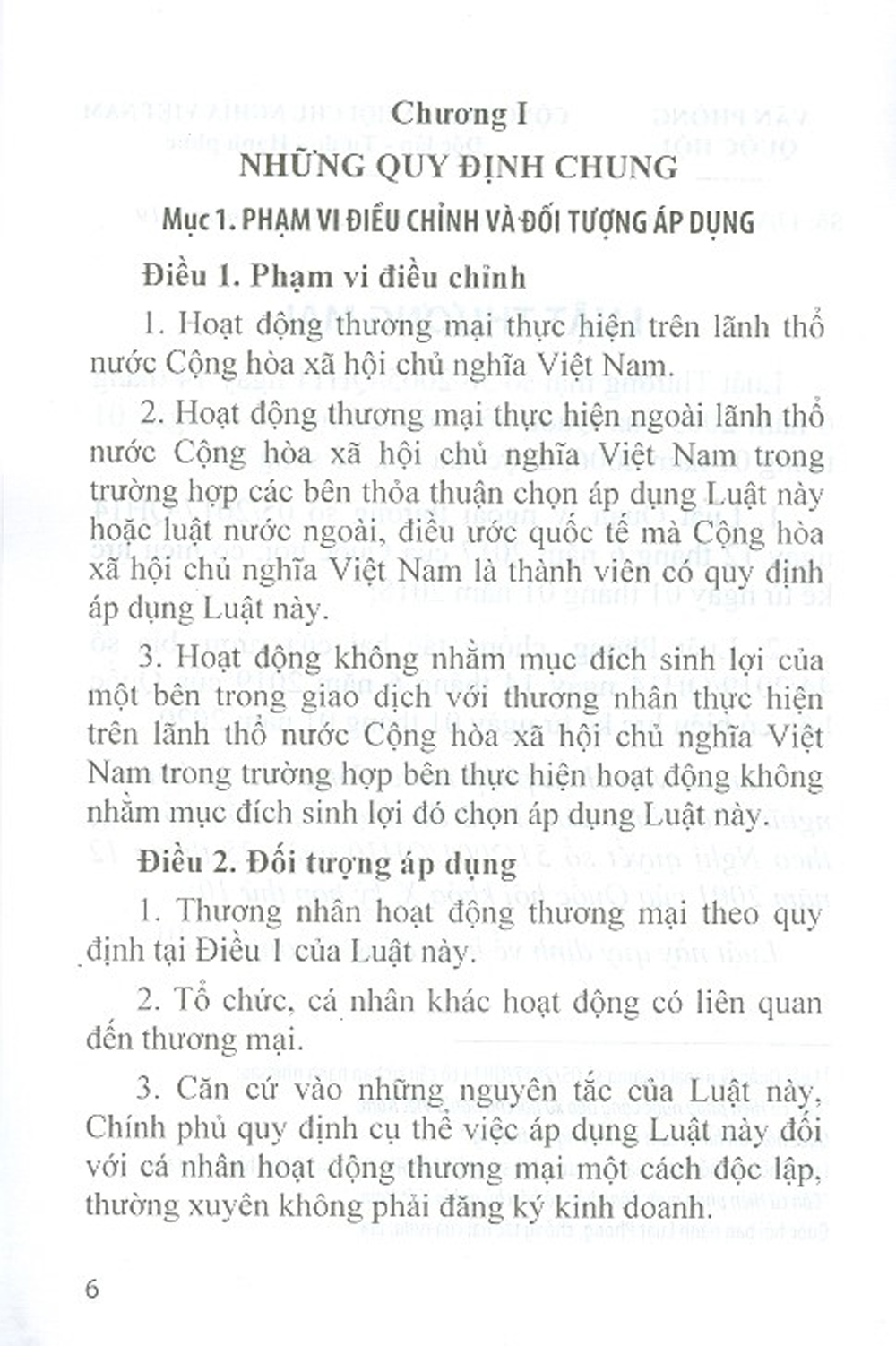 Luật Doanh Nghiệp (DH) Chương I NHỮNG QUY ĐỊNH CHUNG Điều 1. Phạm vi điều chỉnh Luật này quy định về việc thành lập, tổ chức quản lý, tổ chức lại, giải thể và