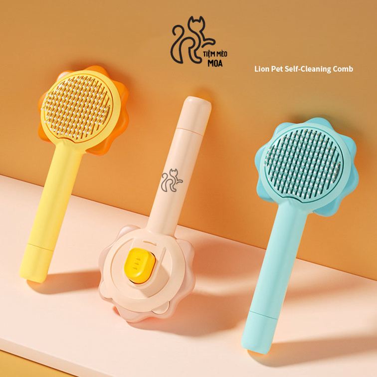 Lược chải lông rụng dành cho chó mèo có nút bấm hình hoa dễ thương Tay cầm thoải mái trên lược cho thú cưng này giúp cầm thoải mái. Nó có thiết kế có
