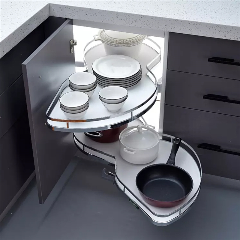 Mâm xoay hình lá T-Leaf Ecalite EL-NST900R - Phụ kiện hiện đại cho góc tủ bếp Mâm xoay hình lá Ecalite EL-NST900R sở hữu kiểu dáng hiện đại với chất liệu inox cao cấp, luôn bền đẹp và chống oxi hoá tối ưu. Với thiết kế hai tầng cùng hệ thống giá đỡ chắc chắn, đây hứa hẹn sẽ là phụ kiện bếp hoàn hảo giúp tận dụng triệt để góc tủ bếp hẹp, đem đến sự gọn gàng, đẹp mắt cho căn bếp nhà bạn.    Mâm xoay hình lá T-Leaf Ecalite EL-NST900R   Chi tiết mâm xoay inox Ecalite EL-NST900R Kiểu dáng sang trọng, hiện đại   Mâm xoay hình lá 900mm Ecalite EL-NST900R là sản phẩm dành riêng cho kệ góc bên trong tủ bếp. Do đó, phụ kiện được thiết kế để lắp đặt âm tủ giúp tiết kiệm diện tích hiệu quả, đồng thời tận dụng tối đa không gian của tủ bếp. Sản phẩm vì thế rất phù hợp cho xu hướng thiết kế nhà ở hiện nay, đặc biệt là các không gian bếp nhỏ như nhà phố hoặc chung cư, đem đến sự tiện lợi và sang trọng cho tổng thể. Với gam màu trắng trung tính trang nhã, thanh lịch sẽ tôn lên vẻ đẹp cho căn bếp nhà bạn.   Thiết kế hiện đại điểm nhấn cho căn bếp   Chất liệu inox cao cấp, chắc chắn, chống gỉ sét   Một chất liệu được ứng dụng phổ biến trong ngành thiết bị nhà bếp nói chung cũng như  nói riêng được các chuyên gia đánh giá cao chính là chất liệu inox (thép không gỉ). Ecalite EL-NST900R với việc hoàn thiện từ chất liệu này nên sở hữu nhiều ưu điểm lớn như cấu trúc chắc chắn, chịu lực tốt, bề mặt sáng bóng, chống bám bẩn, chống oxi hoá vượt trội. Nhờ vậy, sản phẩm luôn đảm bảo độ bền cao, bền đẹp theo thời gian.    Bề mặt sáng bóng thuận tiện để vệ sinh   Thiết kế hai tầng, di chuyển độc lập tiện lợi   Mâm xoay hình lá Ecalite có thiết kế 2 tầng với mâm trên và mâm dưới giúp người dùng phân loại chén đĩa, chai lọ, riêng biệt trên mỗi tầng. Đồng thời, với khả năng xoay chuyển hướng độc lập,  này giúp bạn lấy các vật dụng cần thiết một cách nhẹ nhàng, nhanh chóng mà không tốn nhiều sức.   Ecalite EL-NST900R có thiết kế 2 tầng riêng biệt     Sắp xếp đồ dùng khoa học, sạch sẽ   Với thiết kế nan vuông có độ chắc chắn cao, Ecalite EL-NST900R được sử dụng cho nhiều nhu cầu lưu trữ của gia đình như úp chén dĩa, xoong nồi, các loại hộp, cốc, chai lọ, một cách khoa học, ngăn nắp, thuận tiện cho việc sử dụng hàng ngày. Ngoài ra, nhờ được bảo quản bên trong tủ bếp nên các đồ dùng luôn sạch sẽ, không lo bị côn trùng làm bẩn, bảo vệ sức khoẻ của người dùng.    Khả năng lưu trữ thông minh của mâm xoay góc Ecalite Khả năng chịu lực lớn   Mâm xoay hình lá inox Ecalite EL-NST900R được trang bị trục cố định chắc chắn để liên kết giữa các tầng giúp giá có được tải trọng lớn mà không lo cong, võng, hư hỏng. Nhờ đó, người dùng có thể đặt được nhiều vật dụng lớn mà vẫn đảm bảo độ an toàn.    Các chi tiết được gắn chắc chắn không lo bị cong vênh     Chính sách bảo hành mâm xoay mở phải Ecalite EL-NST900R Mâm xoay hình lá T-Leaf Ecalite EL-NST900R tủ dưới được  bảo hành chính hãng 3 năm tại nhà. Tham khảo thêm:        Chính sách bảo hành 3 năm giúp khách hàng sử dụng yên tâm   Mâm xoay hình lá mở phải Ecalite EL-NST900R sở hữu nhiều ưu điểm về thiết kế, chất liệu, công năng. Đây là phụ kiện tủ bếp dưới đẹp mắt và tiện lợi trở thành giải pháp thông minh cho việc lưu trữ của các gia đình.   Nguồn : ecalite.com