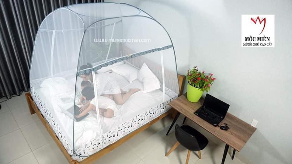 MÀN CHỤP , MÙNG CHỤP CAO CẤP MỘC MIÊN ĐỈNH CHÓP : - Dùng màn chụp đỉnh chóp cho không gian nhà nhỏ - dễ gấp , mắt lưới thưa hơn mà vẫn đảm đảm