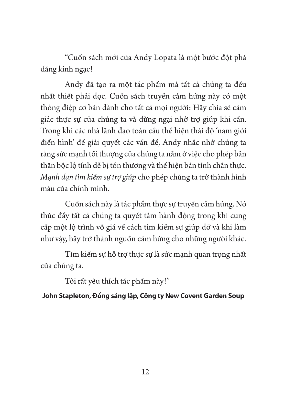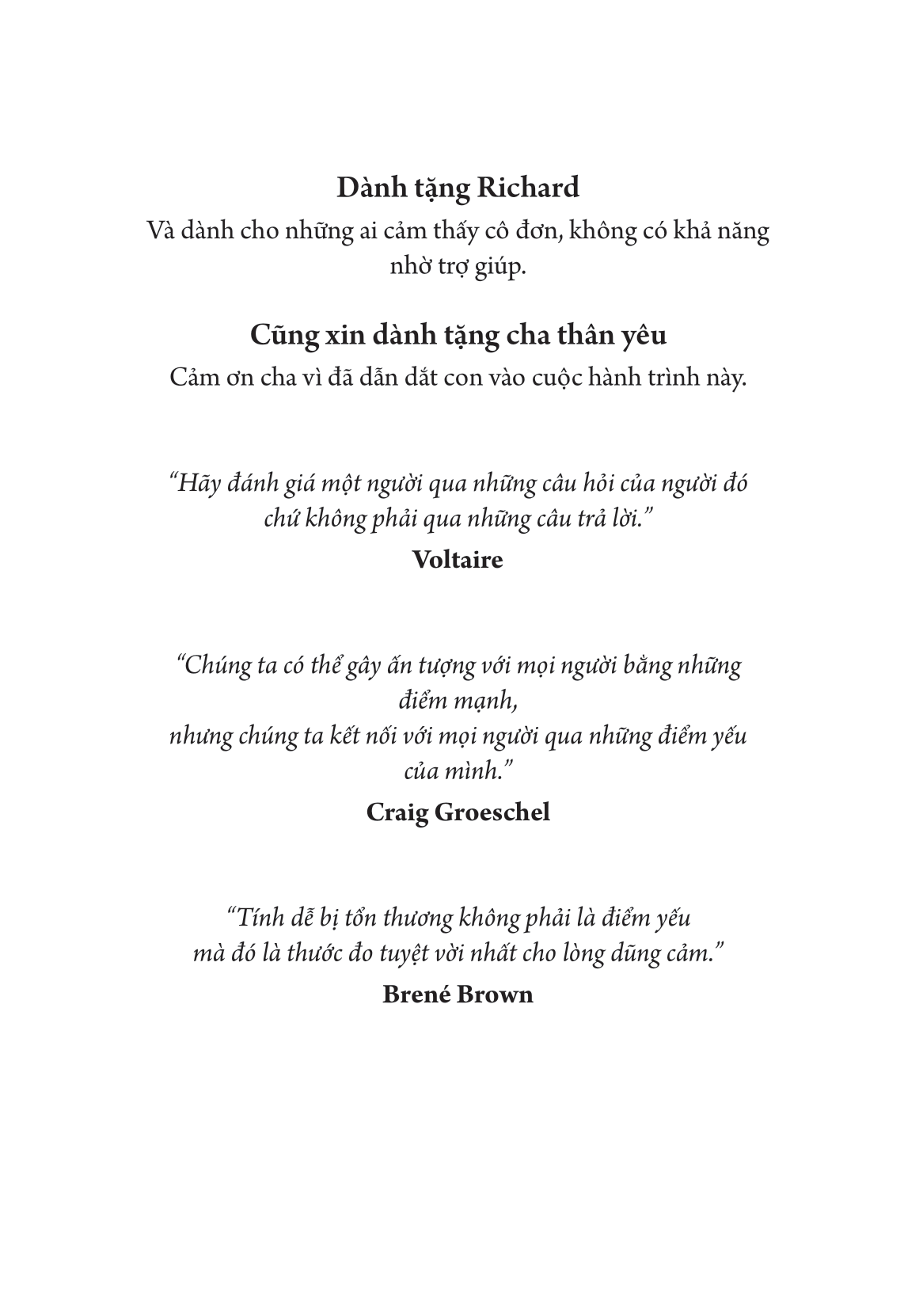 "Có quá nhiều thứ ngăn cản chúng ta nhờ trợ giúp. Điều mà chúng ta luôn không nhận ra là mọi người đều muốn giúp đỡ, họ thích giúp đỡ và họ sẽ cảm thấy tổn thương nếu chúng ta không để họ giúp đỡ m.ình."