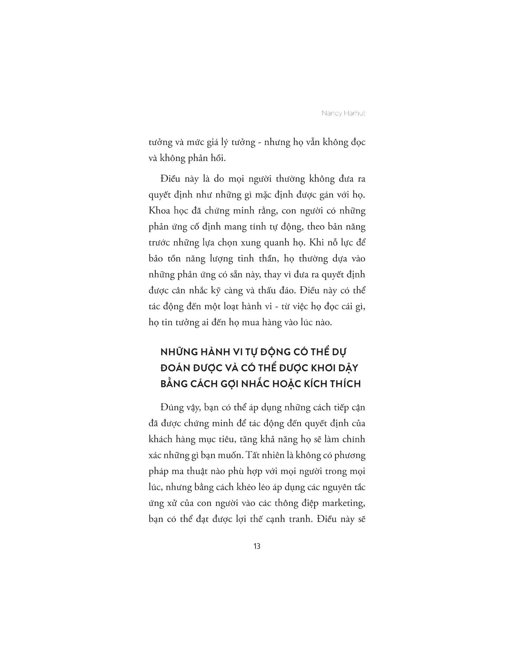 Lý giải nguyên nhân điều này là do khách hàng thường đưa ra quyết định dựa vào những phản ứng bản năng, thay vì cân nhắc kỹ càng và thấu đáo. Chính vì thế, bạn có thể tận dụng các nguyên tắc tâm lý để khơi dậy những hành vi tự động ở khách hàng mục tiêu, tăng khả năng họ sẽ làm chính xác những gì bạn muốn. Bằng cách khéo léo áp dụng các nguyên tắc ứng xử của con người vào các thông điệp marketing, bạn có thể đạt được lợi thế cạnh tranh và bán hàng thành công.