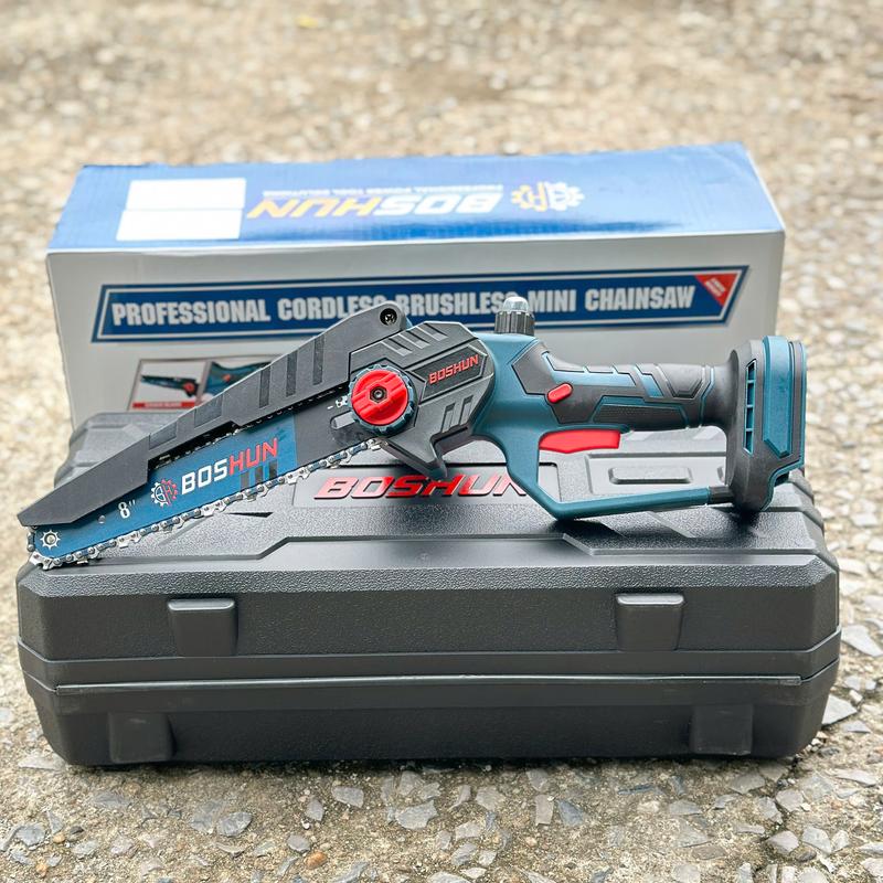 - Thương hiệu: BOSHUN Máy cưa xích pin BOSHUN CS08, Lam xích 8 inch, Động cơ Không Chổi Than, Chân Pin thông dụng