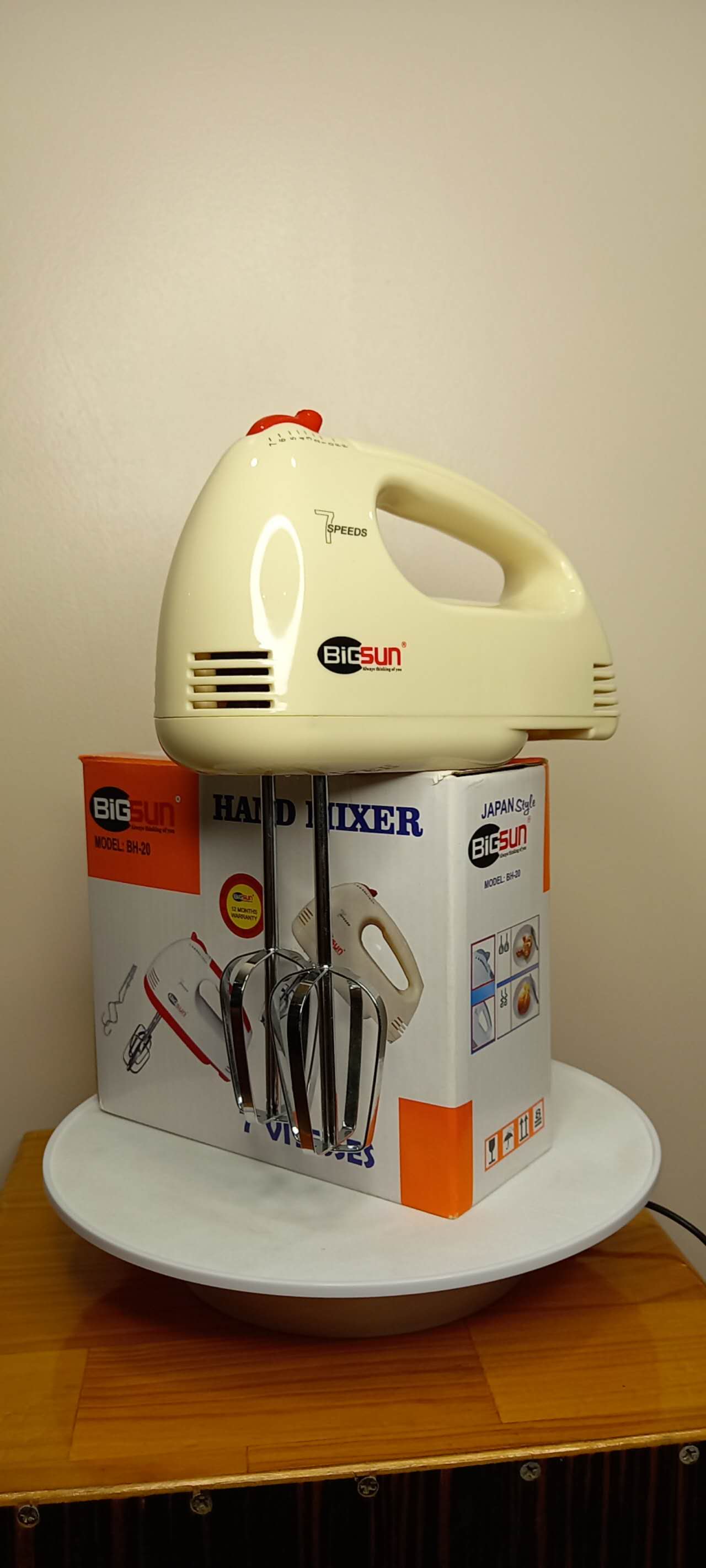 Giới thiệu sản phẩm: Máy trộn bột (Máy đánh trứng) cầm tay Bigsun, 200W, 7 chế độ trộn khuấy. Model: BH-20 - kiểu Nhật. Màu sắc: Có 2 kiểu màu vàng nhạc trứng và mày