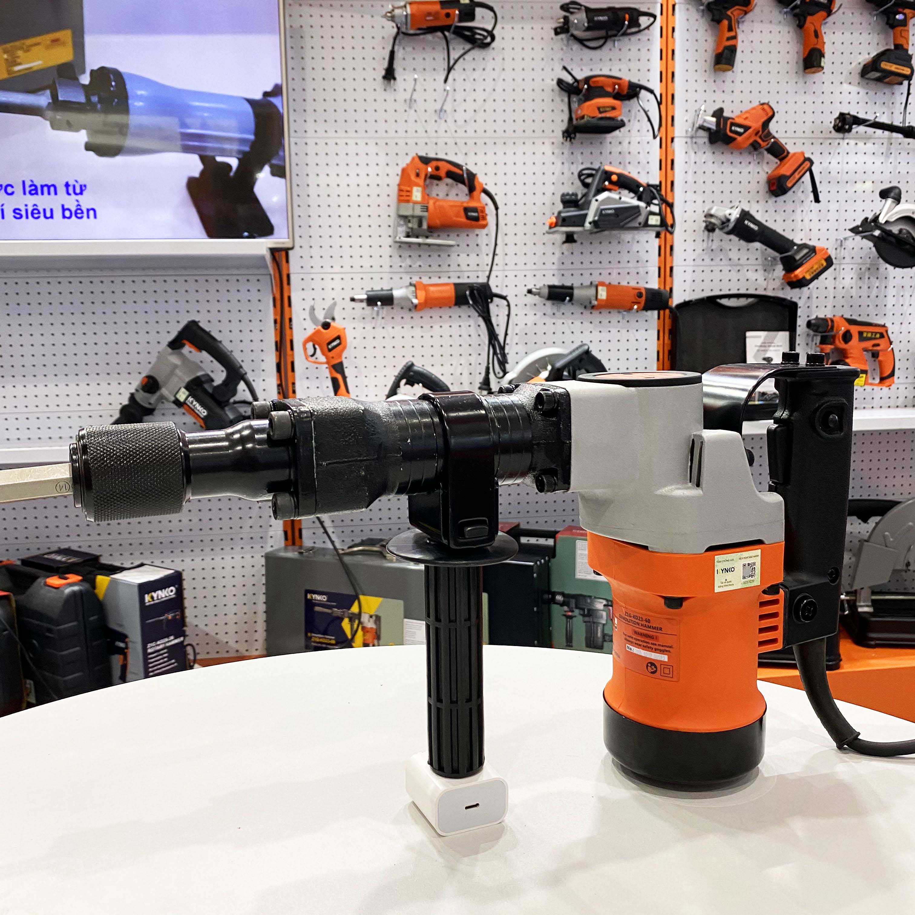 Máy đục bê tông Kynko Z1G-KD23-60 được ví như chiến binh thiện chiến trong ngành dụng cụ cầm tay. Đây là dòng máy đục nhỡ được sử dụng phổ biến trong xây dựng, phá dỡ, cải tạo công trình và một số việc đặc thù khác. Máy đục Kynko hướng đến thợ sử dụng chuyên nghiệp, có cường độ lao động rất cao.