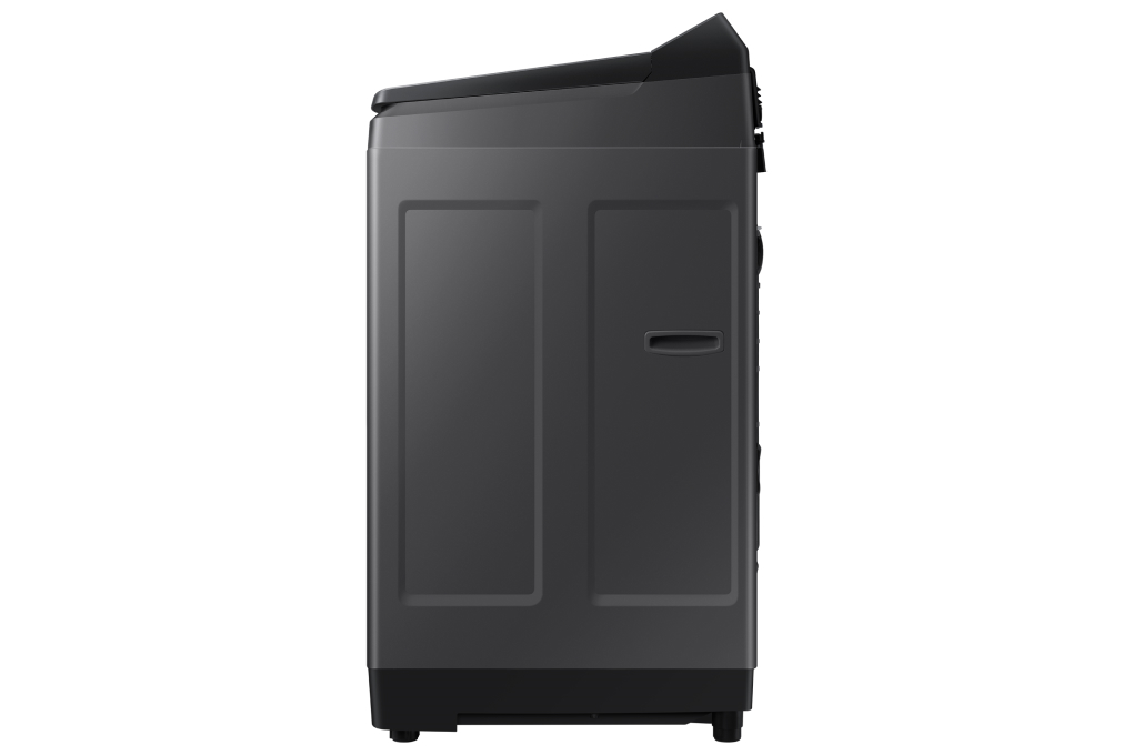 - Kiểu dáng: máy giặt cửa trên - lồng đứng dạng hình khối chữ nhật đứng thiết kế tối giản, hiện đại, tông màu đen - xám trang nhã, tô điểm cho không gian sống của bạn sang trọng, đẳng cấp hơn. - Bảng điều khiển song ngữ Anh - Việt, có màn hình hiển thị thân thiện, thiết kế nghiêng ở mặt sau của máy giặt, tránh được tình trạng nước tràn vào bề mặt màn hình điều khiển và cho người dùng thao tác thoải mái, dễ dàng hơn. - Lồng giặt bằng thép không rỉ hạn chế rỉ sét, thiết kế các lỗ thoát nước nhỏ giảm khả năng làm tưa sờn mặt vải, bảo vệ quần áo, đảm bảo hiệu quả giặt giũ tối ưu. - Nắp máy chất liệu kính chịu lực dày bền, chịu lực tốt, được làm trong suốt cho bạn dễ quan sát bên trong máy ngay cả khi không mở nắp máy giặt Samsung ra. *Hình ảnh chỉ mang tính chất minh họa Khối lượng giặt và chương trình giặt