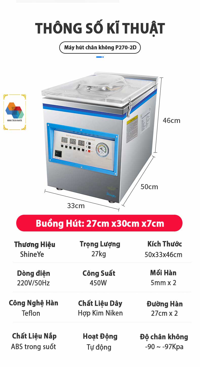 Sự lựa chọn phổ biến cho các nhà kinh doanh thực phẩm Hàng tươi sống - Dầu Mỡ - Đồ Bột Máy hút chân không P270-2D, sở hữu bơm chân không công nghiệp 450W cùng