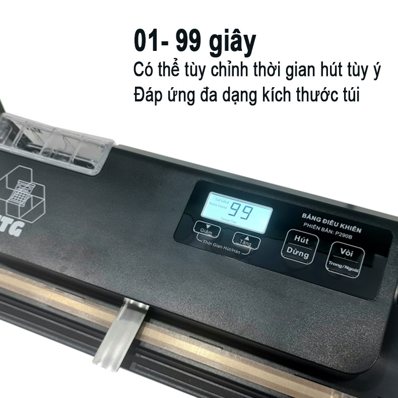 Máy hút chân không không kén túi, thiết kế thông minh tự động, sử dụng với các loại túi nhựa hút chân không trơn, dễ dàng mua túi phổ biến trên thị trường. Máy hút chân không ShineYe HTG P290B được tích hợp tính năng thiết lập thời gian, tự động hoàn toàn, giúp người dùng tiện lợi hơn trong việc đóng gói thực phẩm chân không với kích thước túi đóng, bao bì cố định mà không cần căn chỉnh thời gian hút. Sở hữu 13 nấc hàn miệng túi, đáp ứng đa dạng các loại túi khác nhau phổ biến trên thị trường. Vừa tiết kiệm chi phí mua túi, chi phí sử dụng - vừa tiện lợi hơn cho quá trình sử dụng máy với phiên bản P290B không kén túi Bảng điều khiển Tiếng Việt dễ dàng sử dụng   Các tính năng đáng lưu ý của máy hút chân không P290B Khi bạn có nhu cầu mua một chiếc máy hút chân không, bạn phải biết và hiểu về các tính năng của sản phẩm. Những ưu và nhược điểm của chiếc máy hút chân không P290B có điểm gì ưu việt hơn những chiếc máy đời cũ. Chắc chắn là bạn đang thắc mắc và cần tìm hiểu để có lời giải đáp riêng cho mình.