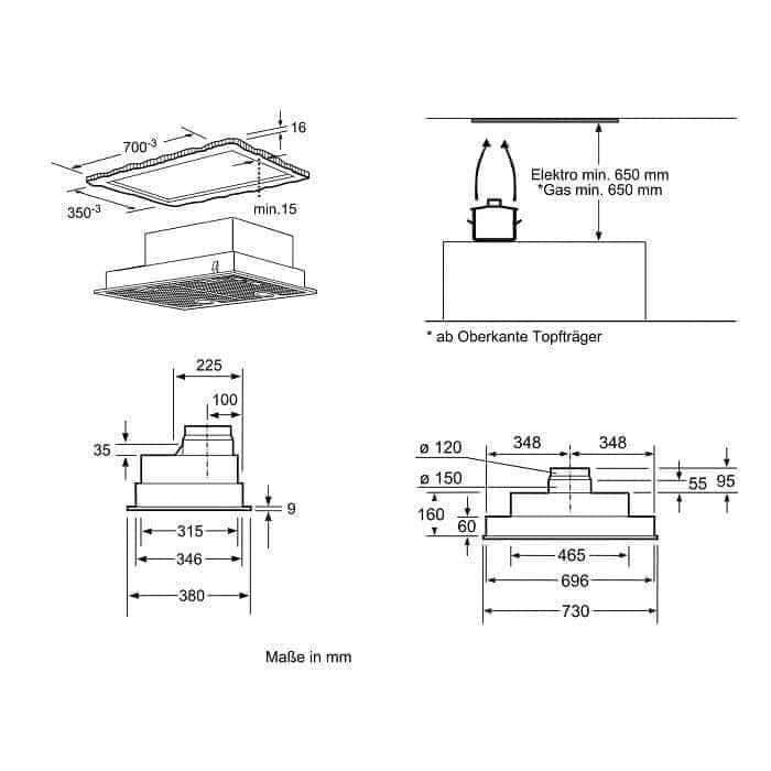 Máy Hút Mùi Âm Tủ BOSCH DHL755BL, 3 Tốc Độ, Kt 255 x 730 x 380 mm, Nhập Đức, BH 12 Tháng - Công suất hút: 638 m3/h - Bảng điều khiển cơ 3 tốc