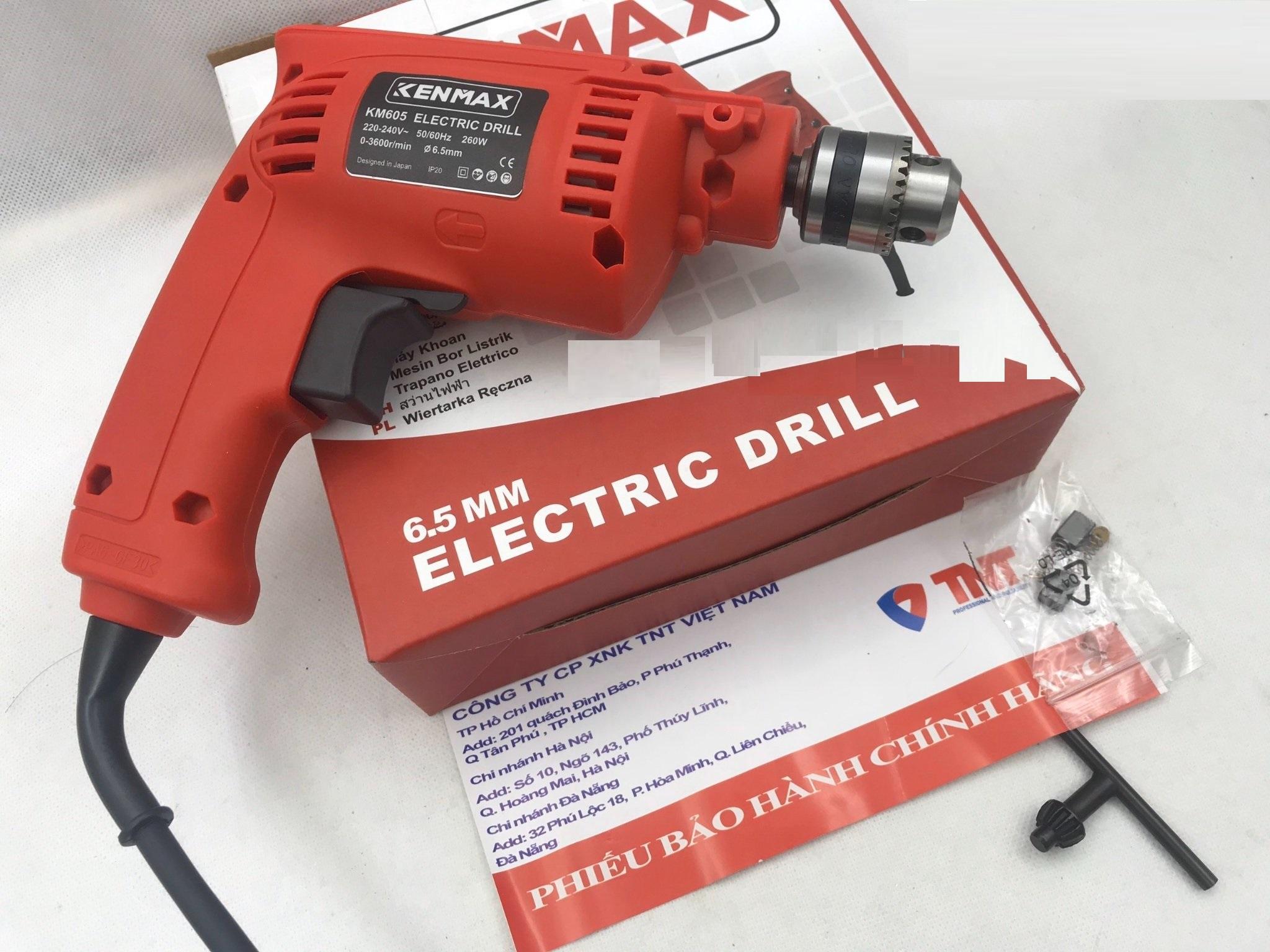Máy khoan điện KM605 chuyên dùng để khoan lên các chất liệu như gỗ, nhôm, sắt, kim loại và có khả năng bắt vít.