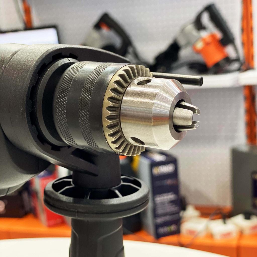 Máy khoan động lực Kynko sử dụng đầu cặp có khóa có thể dùng tới mũi khoan Ø13mm. Vỏ máy được sản xuất từ nhựa cao cấp rất chắc chắn, không biến dạng khi chịu tải lớn. Báng cầm được thiết kế vừa tay, có lớp lót cao su êm và tạo masat tay khi sử dụng. Thân máy còn được đỡ bằng 1 tay cầm phụ lắp thêm tăng độ ổn định, chính xác khi khoan.