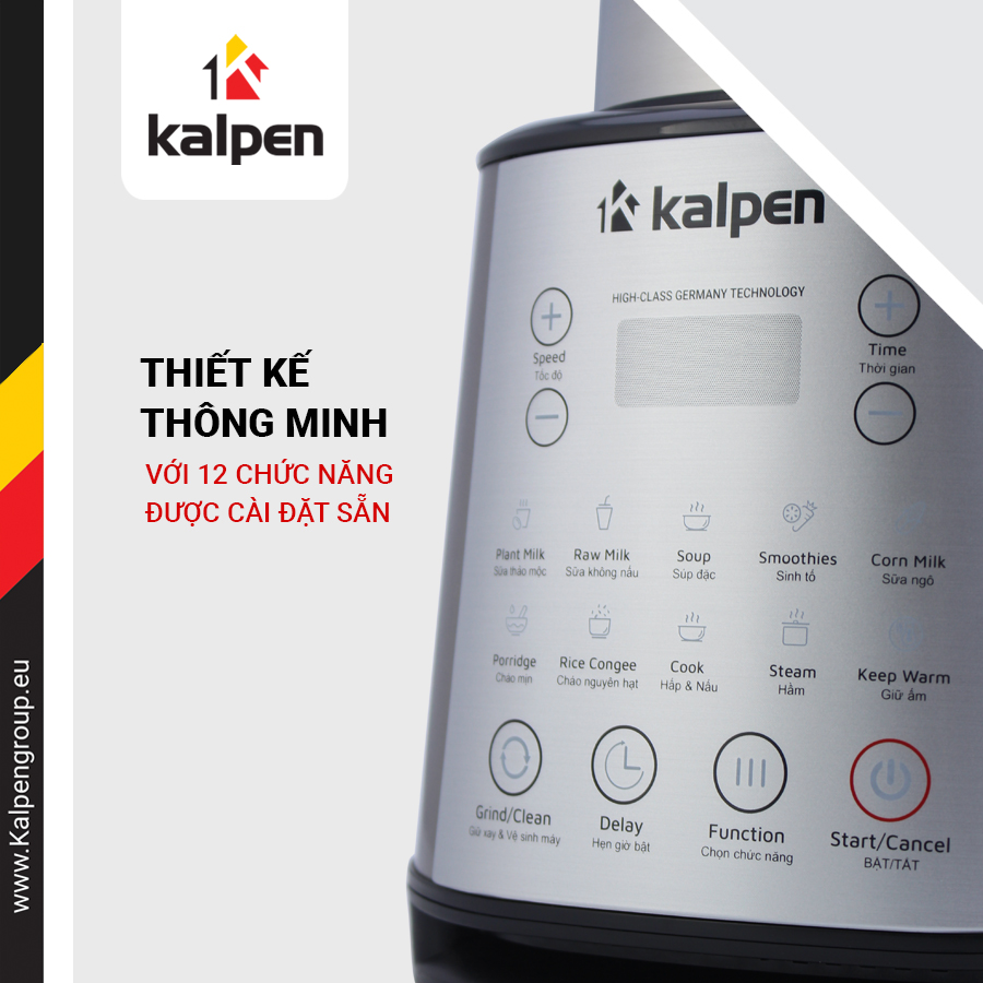 - Máy làm sữa hạt KALPEN CBK-2601 là dòng máy xay nấu đa năng đến từ thương hiệu Kalpen GmbH của Đức. Tích hợp nhiều tính năng như: nấu sữa hạt, xay sữa hạt, làm sữa thảo mộc đa năng siêu mịn, hoạt động bền bỉ, độ ồn thấp, thiết kế sang trọng.
