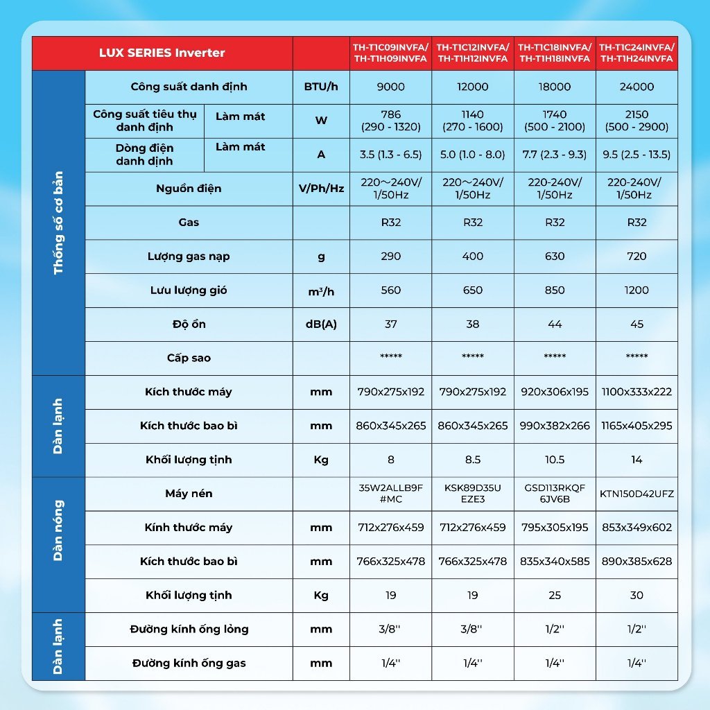 LƯU Ý: ● ĐƠN HÀNG KHÁCH Ở HỒ CHÍ MINH --- SHOP GIAO MIỄN PHÍ (TRỪ CẦN GIỜ). THÔNG TIN SẢN PHẨM - Loại máy:1 chiều (chỉ làm lạnh) - Inverter:Có Inverter - Công suất làm lạnh:1.5 HP - 12.300 BTU - Phạm vi làm lạnh hiệu quả:Từ 15 - 20m² (từ 40 đến 60m³) - Độ ồn trung bình:50 dB - Dòng sản phẩm:2025 - Sản xuất tại:Thái Lan - Thời gian bảo hành cục lạnh:2 năm - Thời gian bảo hành cục nóng:Máy nén 10 năm - Chất liệu dàn tản nhiệt:Ống dẫn gas bằng Đồng - Lá tản nhiệt bằng Nhôm phủ lớp Gold-Fin - Loại Gas:R-32 Mức tiêu thụ điện năng - Tiêu thụ điện:1.15 kW/h - Nhãn năng lượng:5 sao (Hiệu suất năng lượng 5.81) - Công nghệ tiết kiệm điện:Dual inverterKw ManagerEnergy Ctrl - Kiểm soát năng lượng chủ động 4 mức Khả năng lọc không khí -