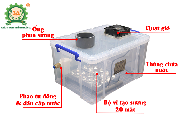 ✨Máy phun sương tạo ẩm trồng đông trùng hạ thảo 3A510W - Hàng Chính Hãng