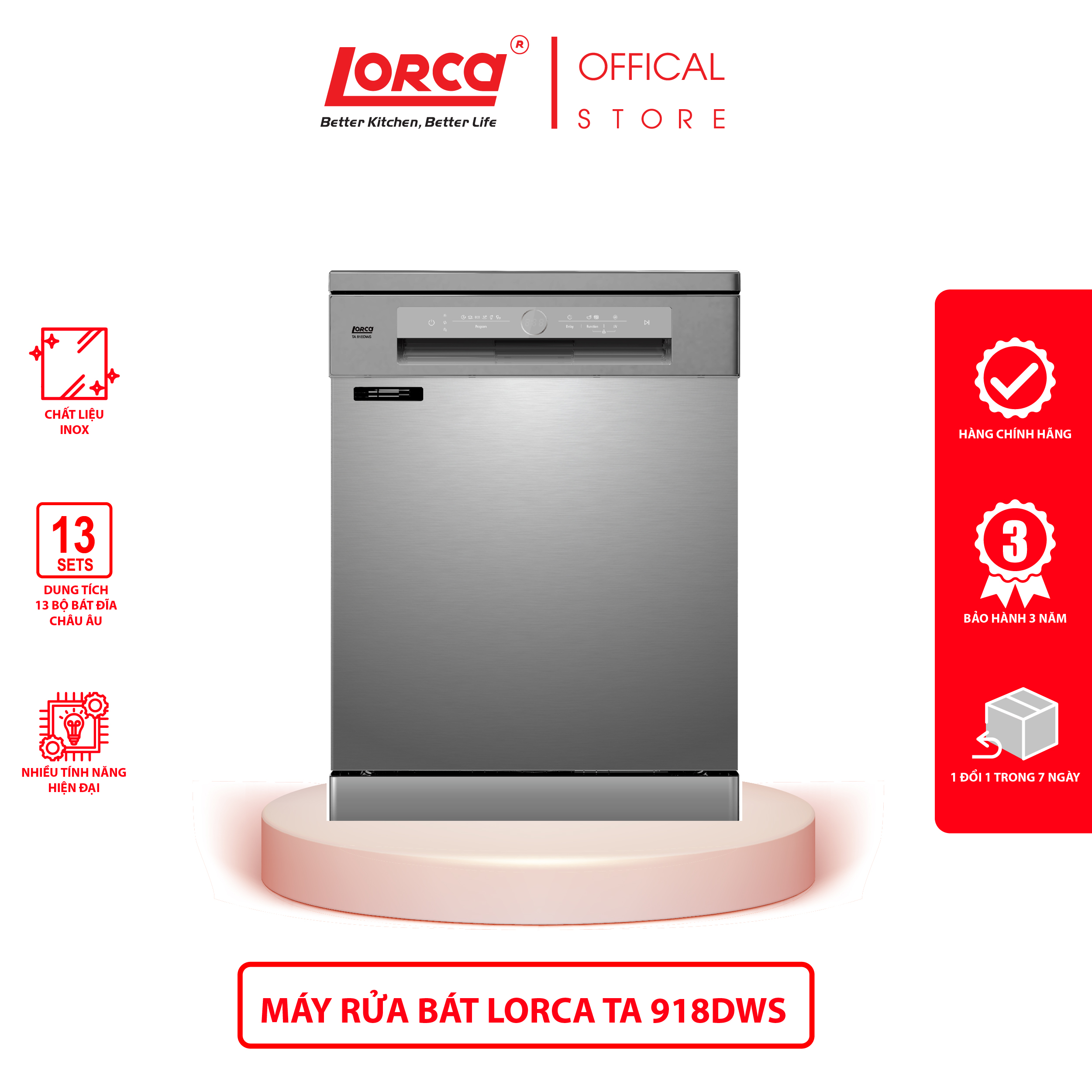 Máy rửa bát 13 bộ LORCA TA 918DWS không chỉ giúp bạn tiết kiệm thời gian và công sức mà còn mang lại sự tiện nghi và hiện đại cho không gian bếp. Hãy sở hữu ngay sản phẩm này để trải nghiệm sự khác biệt trong mỗi bữa ăn gia đình!