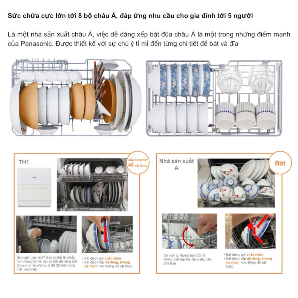 Máy rửa bát để bàn Panasonic NP-TH1WEVN có chức năng sấy khô, bảo hành 12 tháng chính hãng