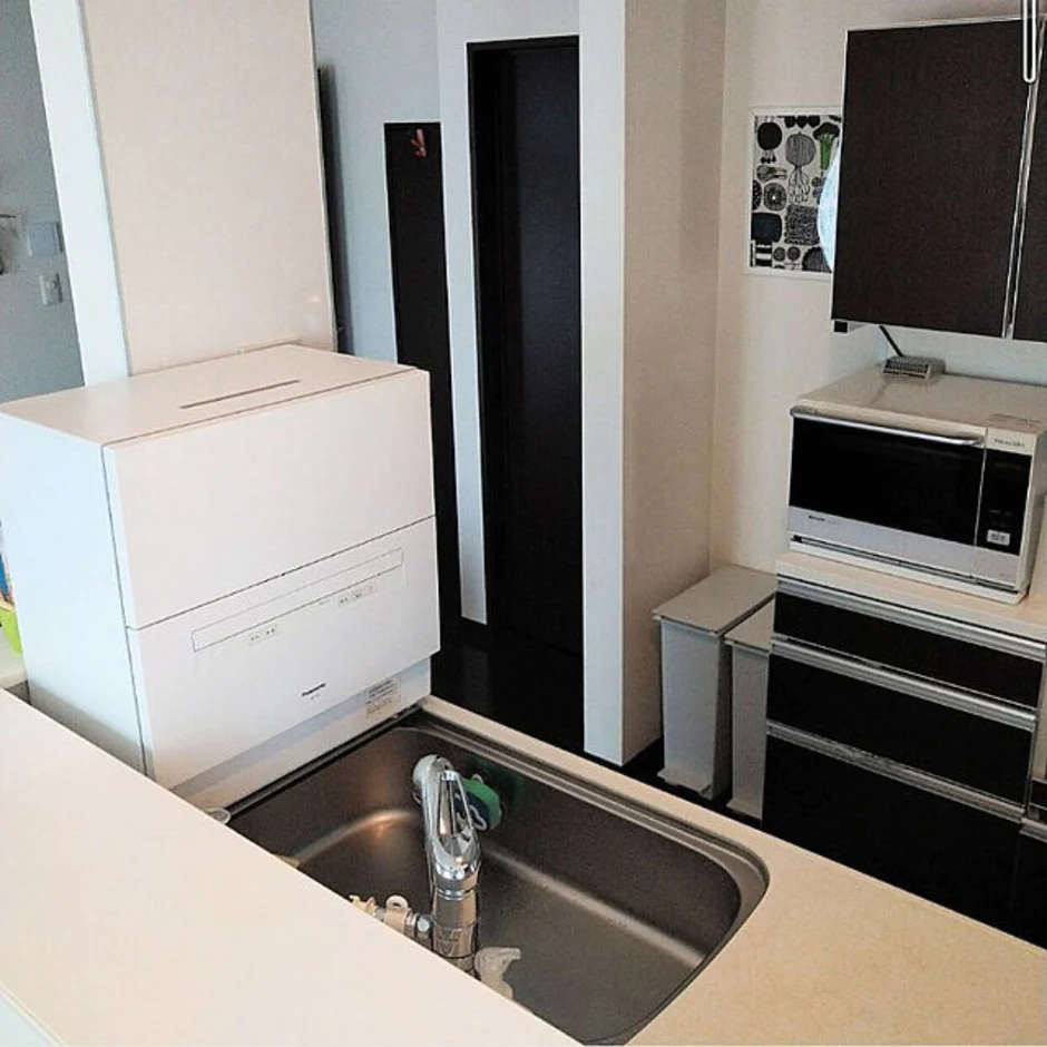 Máy rửa bát để bàn Panasonic NP-TH1WEVN, thiết kế nhỏ gọn, không cần cải tạo bếp 1. Với bề sâu chỉ chưa tới 35cm, máy rửa bát để bàn Panasonic có thể dễ dàng lắp